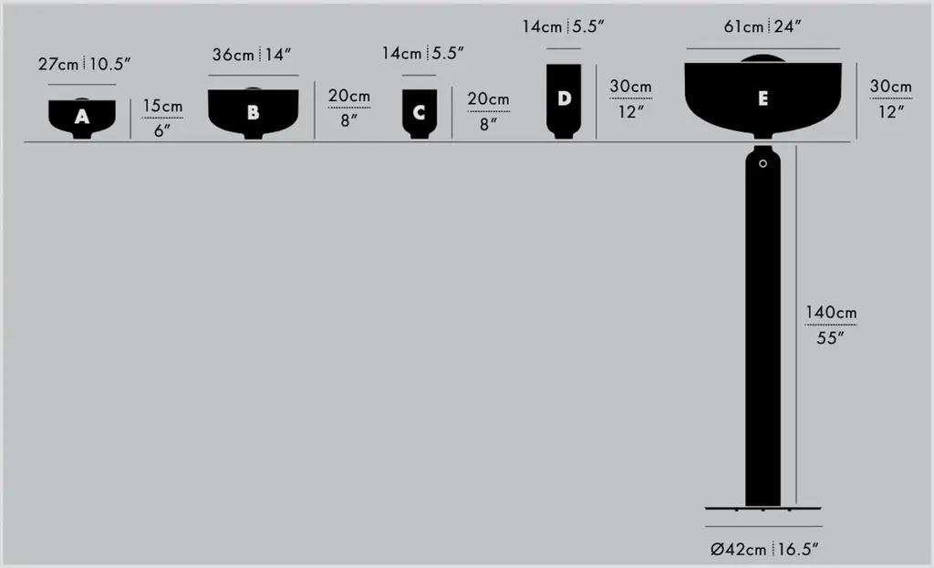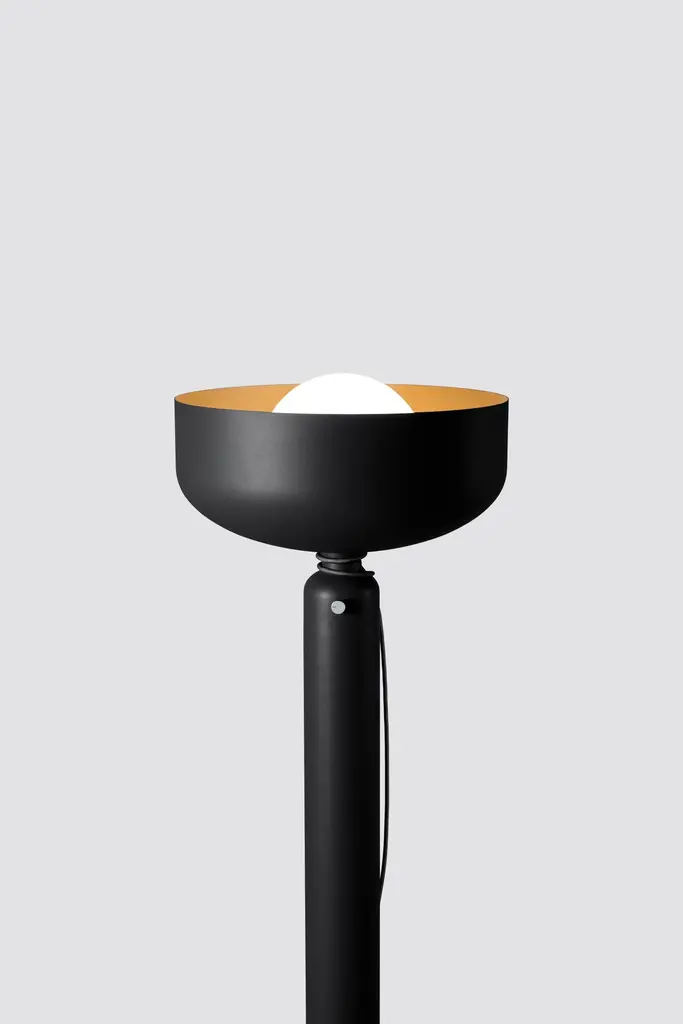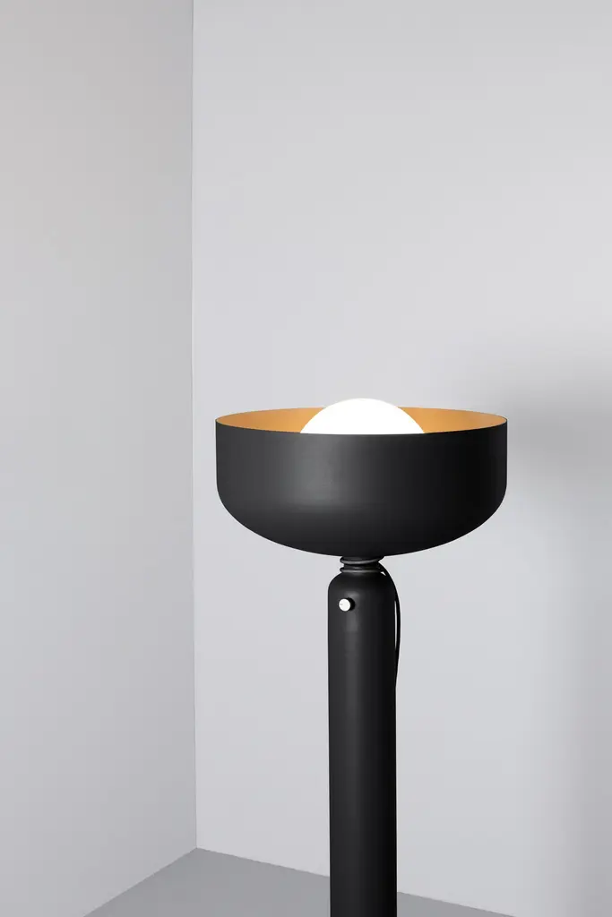 Spotlight Volumes, floor lampDesign: Lukas Peet, Editor: AND LightModel shown: ECompositions– Up light: A, B, C, D or EFloor Lamp: The Spotlight Volumes Floor Lamp shows five unique spun aluminum shade profiles that range from wide to narrow, creating various distinct combinations. Its classic silhouette is complementary to any space as it expresses symmetry, balance, and proportionate form. Each lamp comes with an energy-efficient dimmable LED light bulb and glass globe.The electrical cord wraps and knots around the fixture under the top shade, to delineate the point of connection between the two elements. A weighted base is lined with felt for smooth contact with any surface.Materials: Spun aluminum shade– Input Voltage: 110–120V, 220–240V– Lamping:1 x E26/E27 (Max 16W) Socket16W 2700K A21 Dimmable LED Lamp Included (120V version only) 140mm/5.5” Glass Globe for A Shade 175mm/7” Glass Globe for B Shade 300mm/12” Glass Globe for E Shade– Controls:Hand dimmer switch includedFinishes– Sage– Avocado– Vanilla– Black.