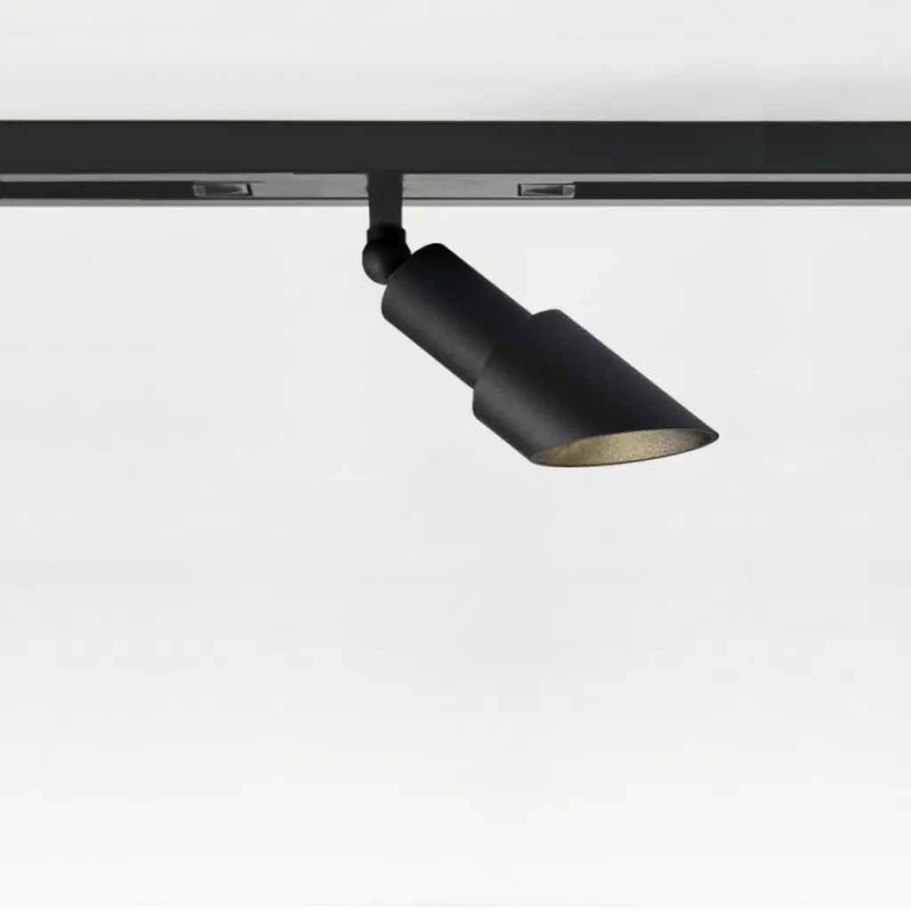 Adjustable downlighter and adaptor for LED track.Provided with a Spot Optic, axial adjustable from 0° to 90° - directional from 0° to 350°.Dimensions: tube Ø 40mm - tube height 125mm - height with screen 170mm.Dimensions LED track: width 30mm - height 15mm.Power supply LED track: 48V DC. Use: indoor (IP20). Energy Class A.