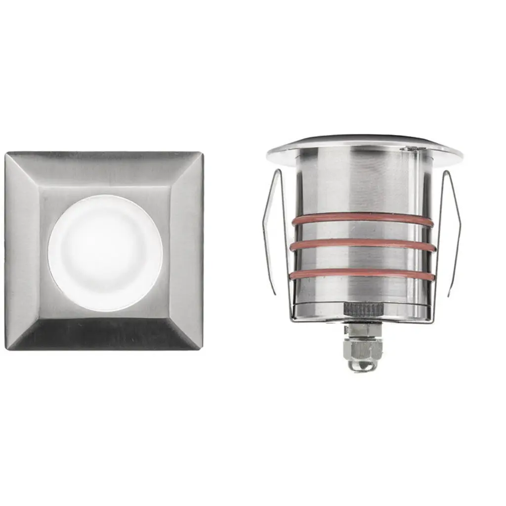 Light source: /W - LED max 2W 500mA 209lm 4000K/WW - LED max 2W 500mA 199lm 3000K/XW - LED max 2W 500mA 189lm 2700KFinishes: Satin steelSeries of walkover recessed spots (IP 67) with frame in stainless steel AISI 316L, heat sink in aluminum and neoprene cable 30 cm. Available in round and square versions. Mounting with recessed box or in plaster boards by means of a specific accessory.Finish: AluminiumSource: LED max. 2W 500mA 199lm 3000K/ LED max. 2W 500mA 209lm 4000K