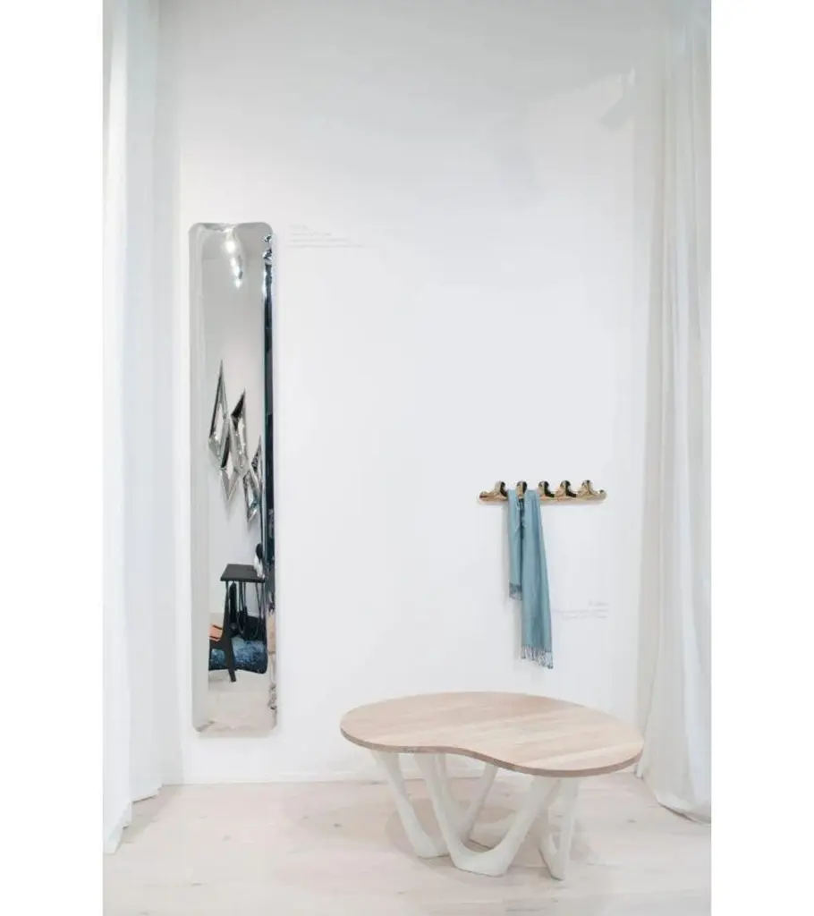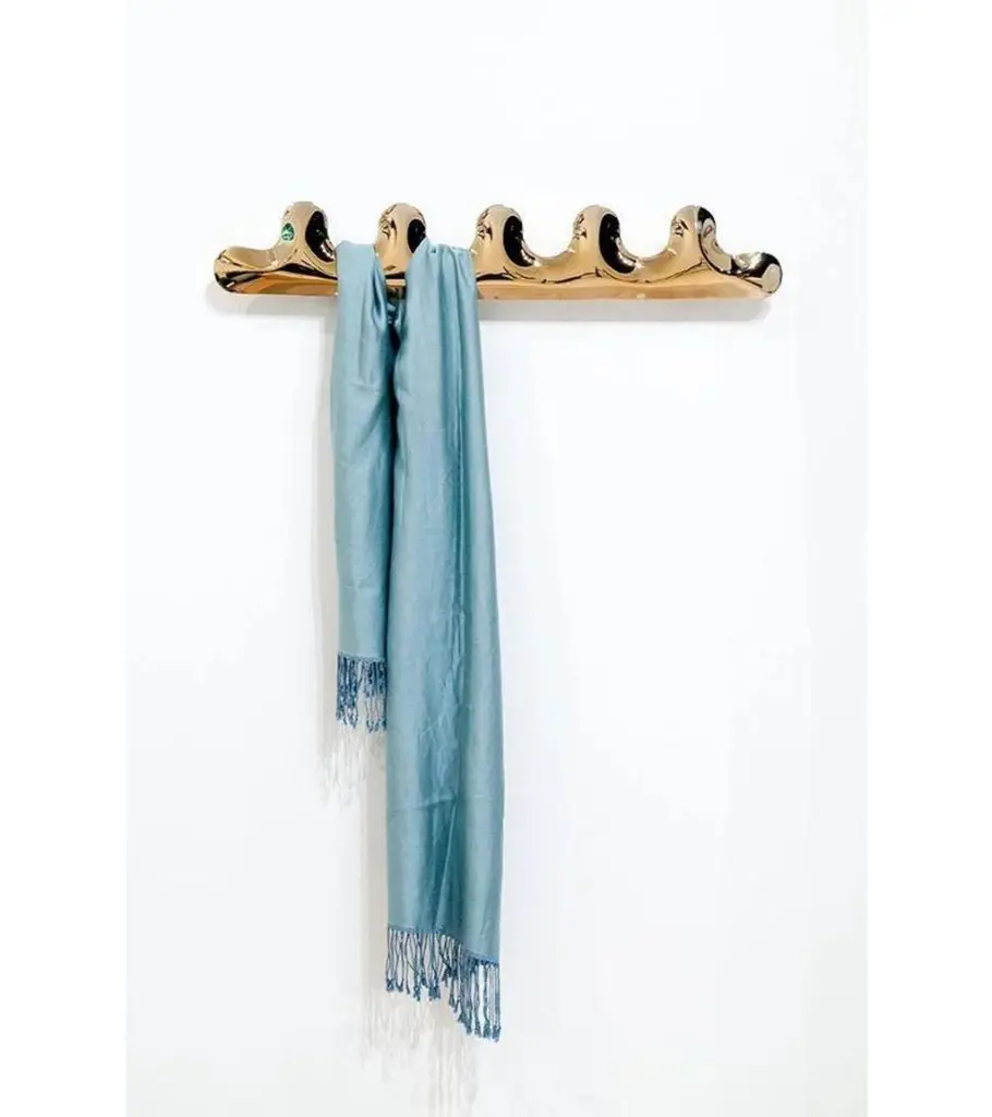 Cosmic Blue Kamm 5 coat hanger by ZietaDimensions: D 6 x W 77 x H 13 cm Material: Stainless steel. Finish: Thermal colored.Available in colors: Beige Grey, Black Glossy, Graphite, Stainless Steel, White Glossy, Flamed Gold, and Cosmic Blue. Also available in Kamm 3 and Kamm 9. KAMM is a coat hanger, available in different sizes, welded, and inflated very carefully under high pressure to create unique bulges and waves.KAMM can be used for hanging coats, shawls, jewelry, bags, and other accessories. It is available in different sizes and finishes.About Zieta: Zietas main goal is to deliver uniqueness and customization in design and construction while keeping the production, transport, and warehousing innovatively efficient.This is how they imagine the future world: Light, durable structures of customized applications produced on demand out of one-of-a-kind parts, yet efficiently.They use a computer-controlled production process. Customized pattern, customized form, customized function, one-of-a-kind product, and outstanding precision are what they deliver.You will find all of this philosophy reflected in the products. The research, they discover new possibilities, they play with forms and they deliver a beautiful, innovative, surprising outcome to people who love the design and who care about design development.They believe their work is a valuable contribution to the world of design not only by the unique beauty of the forms but most of all by opening ultra-innovative opportunities of forming and new paths for the world of the future.