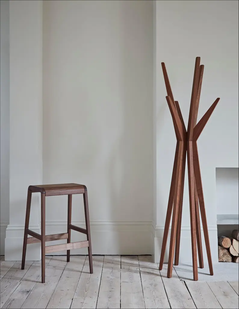 Jackson coat stand by Dare Studio, 2010Dimensions: H 175.6 cm, D 47.4 cm, W 49.2 cmMaterials: American black walnutAlso available in waxed oil timber finish.Dare Studio is a British design company producing award winning furniture for luxury residential interiors and high specification contract environments. Established by Sean Dare in 2009, Dare Studio champions the skills of the finest craftsmen and sets a benchmark for the very best in contemporary design and manufacture. Working with globally respected designers sharing a holistic understanding of the manufacturing process, Dare strives to create pieces which are timeless, future classics.