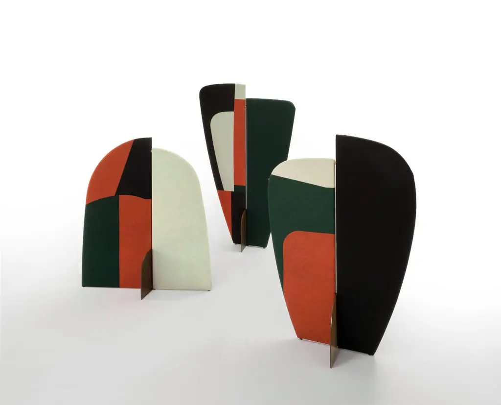 Kazimir screen, type B, geometric coating in silk by Colé Italia with Julia Douza.Dimensions: H.150 D.133 W.40 cm.Materials: Partition screen with jersey fabric coating with fantasy prints and a steel shaped rusted support;the structure is composed with 2 with frames in steel or in wood upholstered.Also available: different coatings, Jersey and Silk Upholstery, Type A & C, Custom Printing, please contact usThe shapes and decor of these three screens are freely inspired on the figurative abstract works by the renowned painter Malevich, a pioneer of the geometric abstractionism of 20th century Russian avant-garde. Symbol and metaphor in the experience of space. This folding screen is made by a wooden frame padded or alternatively by a metal frame. Panels are dressed with specially designed printed removable jersey or silk fabrics evoking painter Malevich’s colors and abstract shapes. Bespoke printings upon request. The structure is supported by a metal base. Small partially concealed adjustable feet. Colé is a young Italian design brand, with a high-end production 100% made in Italy. Born from the experience of Matteo De Ponti, architect, who grew up in one of the most outstanding Milanese design families, and the artistic sensibility of Laura Macagno, degree in Economics and passionate of art and design. Our Mission is to create design icons, beautiful and comfortable pieces that can Stand the test of time, furnishing houses of international and sophisticated clients, and realized with craftsmanship, thus unique. “We love objects which own deep roots, excellent quality, and a strong evocative power. Archetypal forms dressed with new beauty without losing their classical composure”.Our expressive research is inspired by the utopian force of Italian eminences grises architects and designers of the ’50s, the Scandinavian design, the Bauhaus, ethnic handcraft and houses of famous writers of the XX century, all different as a style but united by the intense soul of those who worked and lived there.