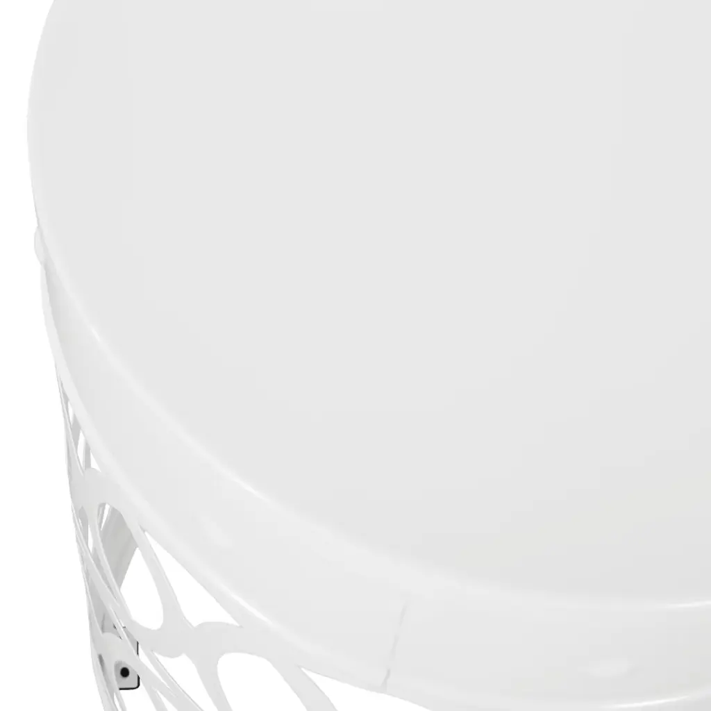 Kumasinova 18" Stylish Cylindrical Outdoor End Table,hollow Carved Sofa Side Table With Powder-coated Iron Frame,patio Accent Table For Pool,white