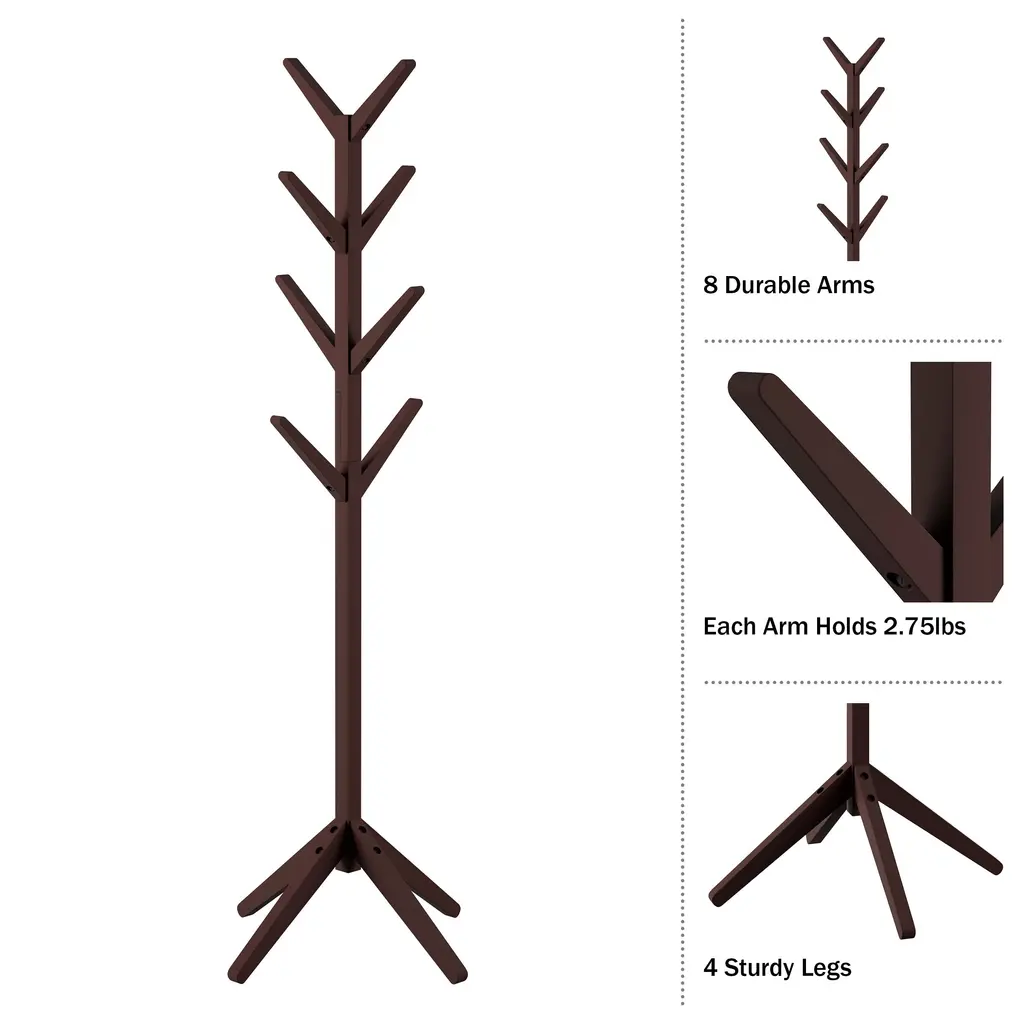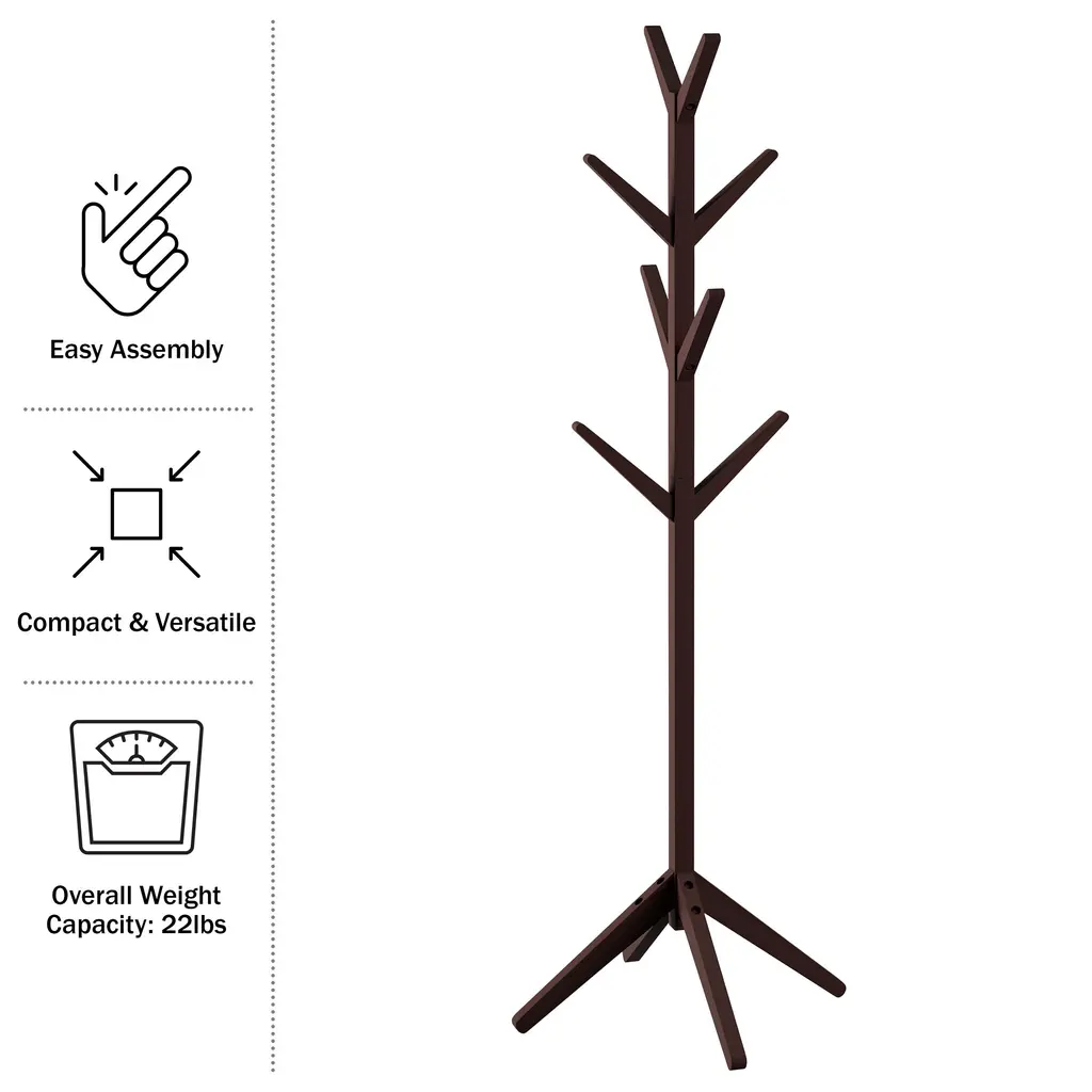 Lavish Home Freestanding Coat Rack - 20 X 20 X 67 - Espresso Brown - 20 X 20 X 67