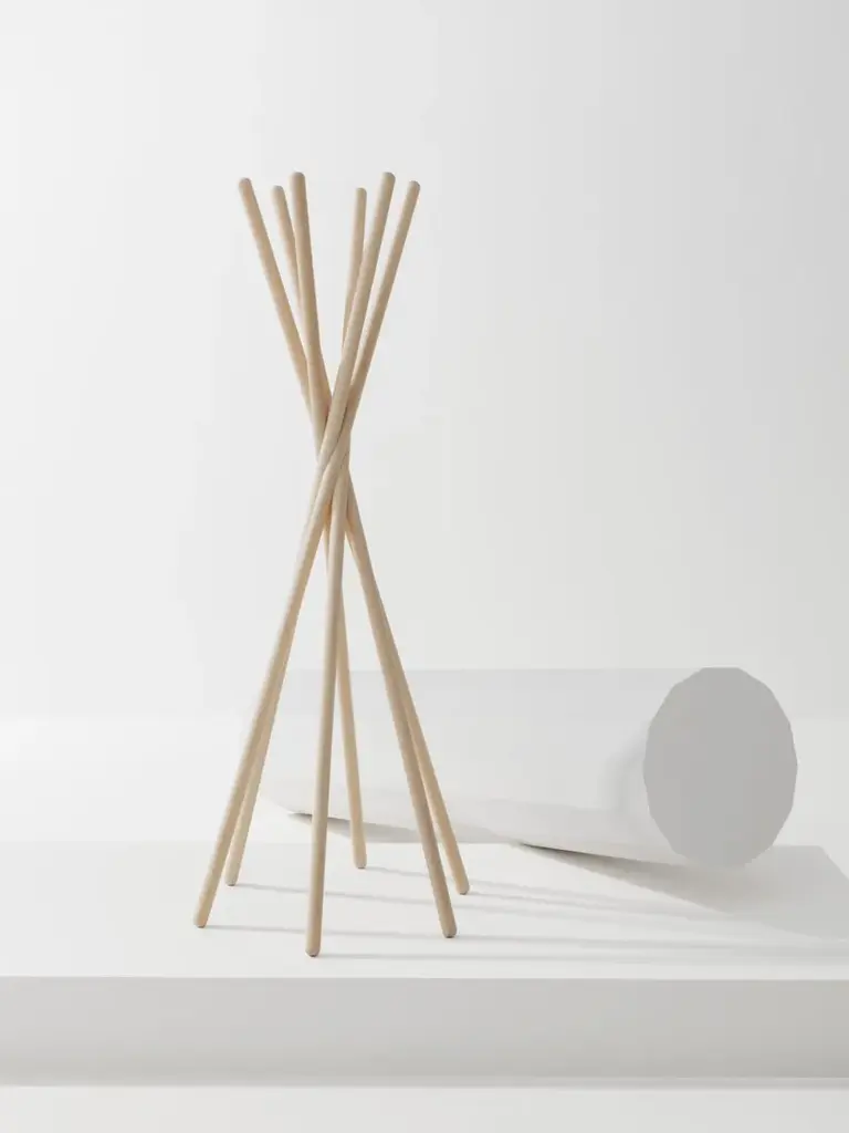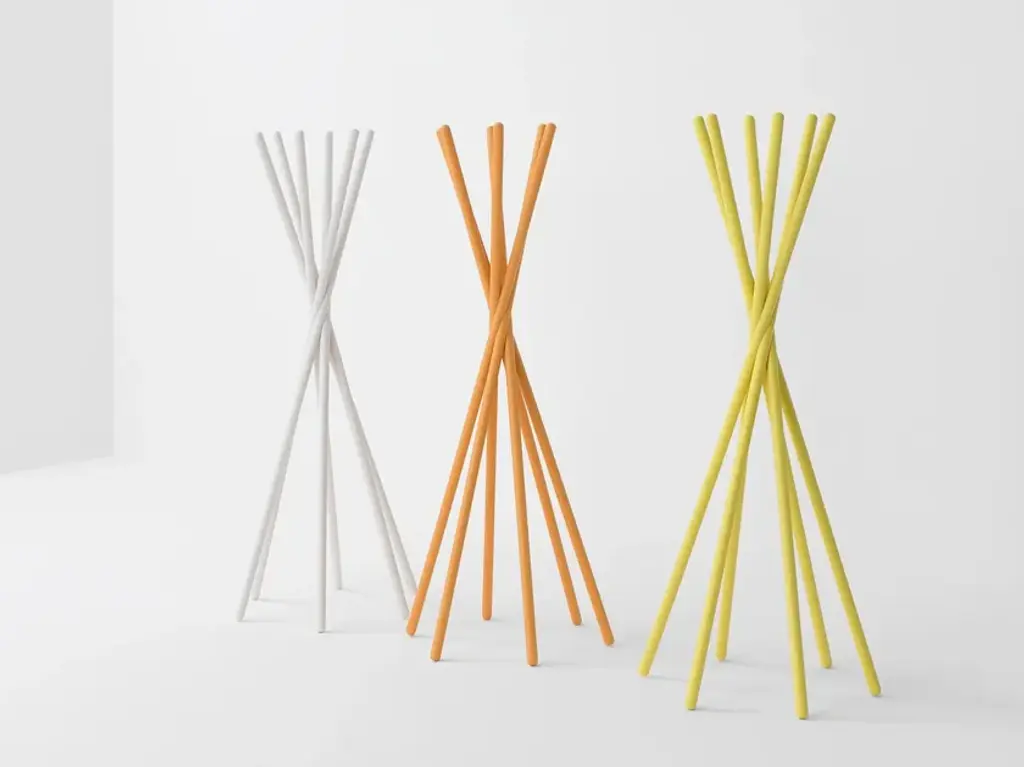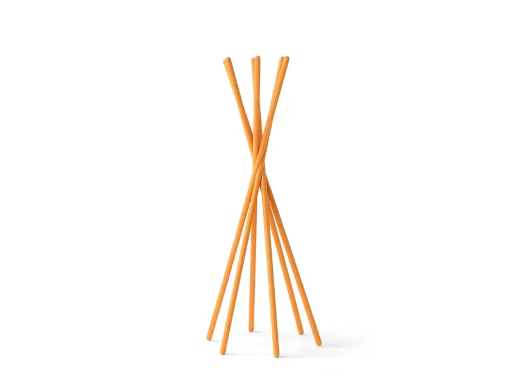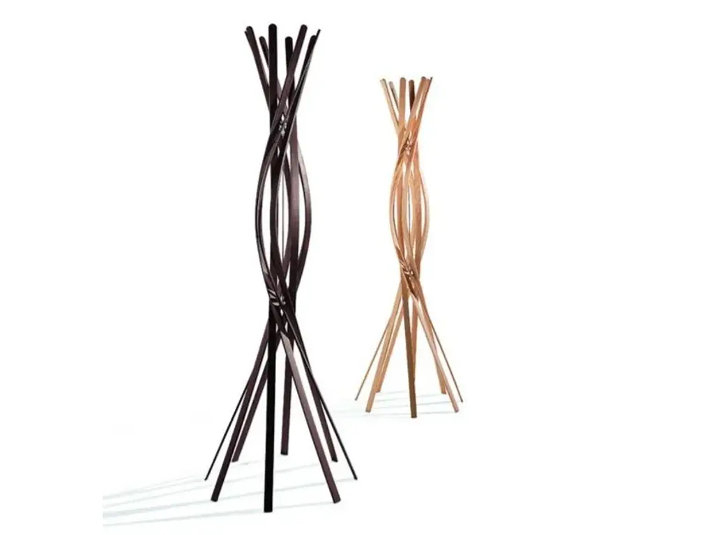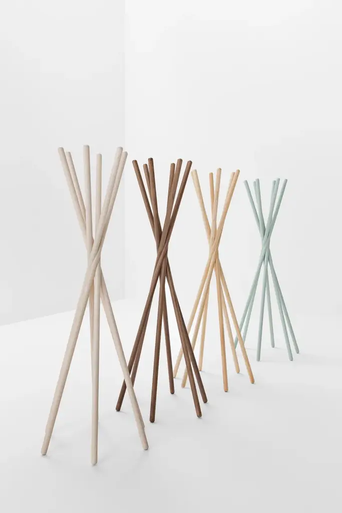 Tango 700 is a floor-standing coat rack made of stained or lacquered ash wood.Tango is a collection that pays tribute to great Italian design. It is an ash wood coat rack made up of six elements twisted around a central joint.The joint itself inspired the project, which, following the principles of Scandinavian minimalism, aimed to avoid using screws or any kind of connectors between the elements, which are milled and simply interlocked.