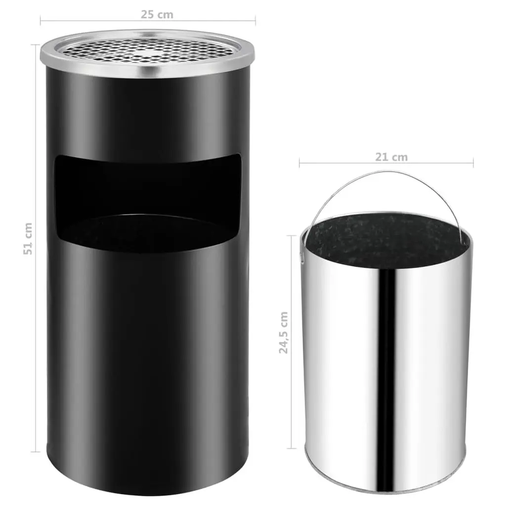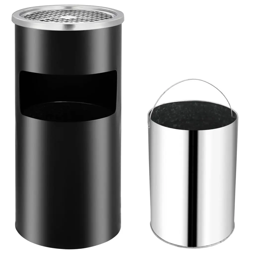 Vidaxl Ashtray Dustbin Black Powder Coated Steel Standard Wall Mounting