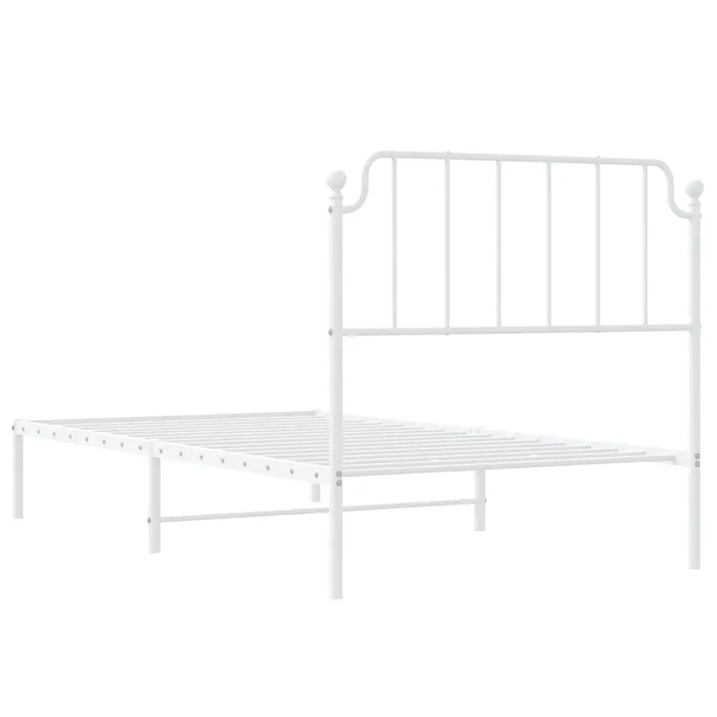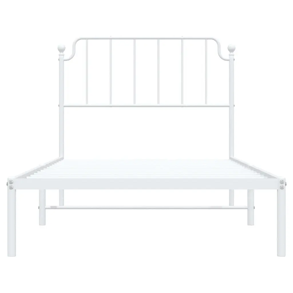 Vidaxl Bed Frame White Powder-Coated Steel Twin Bed Frame Rectangular