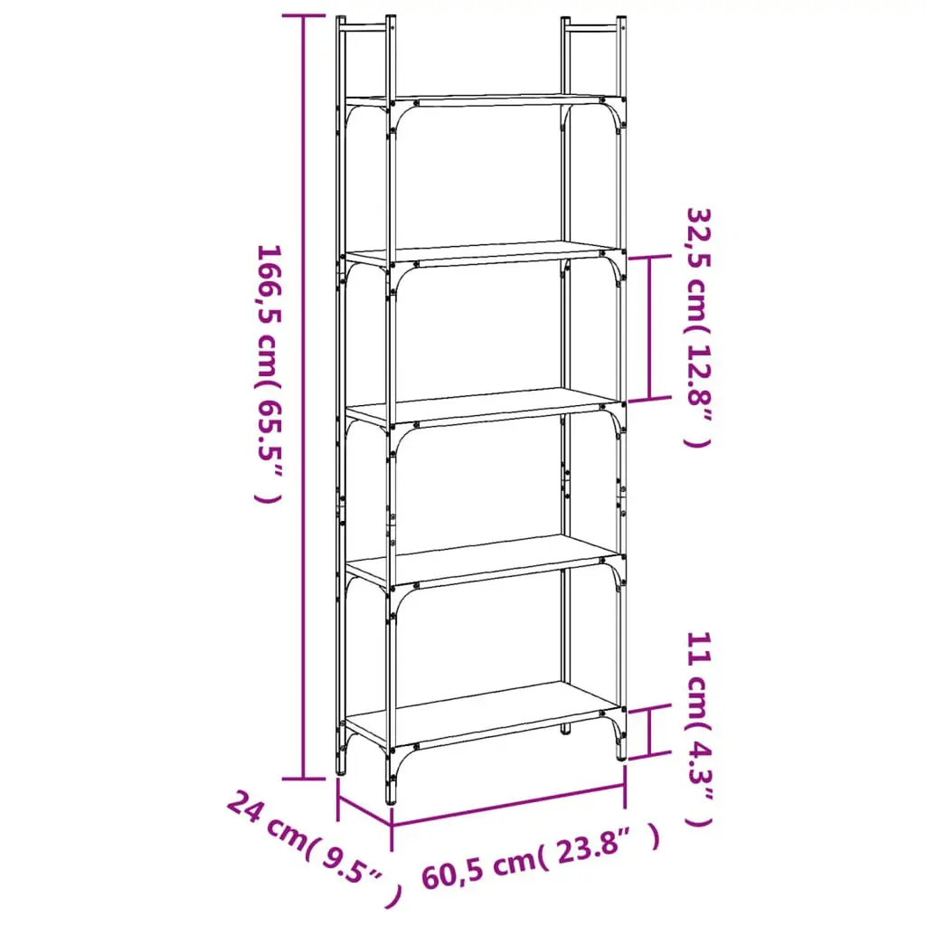 Vidaxl Bookshelf Grey Sonoma Engineered Wood, Powder-Coated Steel Tall