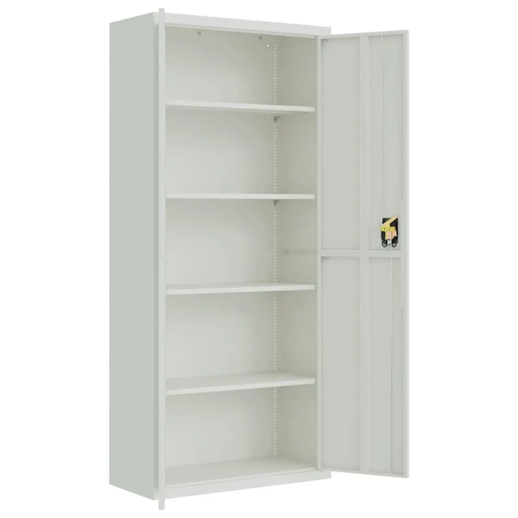 Standing tall at 94.5 in, this Industrial Style File Cabinet balances function and style perfectly. Made from light grey powder-coated steel, it’s got a modern vibe that fits right into any office, making it not just practical but also a real eye-catcher. Ample Storage: The cabinet has five spacious compartments to keep your files and office supplies in check. This smart design makes it easy to find what you need quickly.Height-Adjustable Shelves: Move the shelves up or down for items of different heights. Customize your setup to meet your needs.Secure Locking Mechanism: With a solid cam lock, this file cabinet keeps your sensitive documents safe. Essential for any office where privacy matters.Robust Design: With a tough industrial style, this cabinet uses solid materials for a great look. The quality finish means it’ll last in any busy office.Easy Maintenance: Keeping it clean is a breeze; just wipe it down with a damp cloth. The glossy finish looks good and is easy to care for, matching your fast-paced lifestyle.