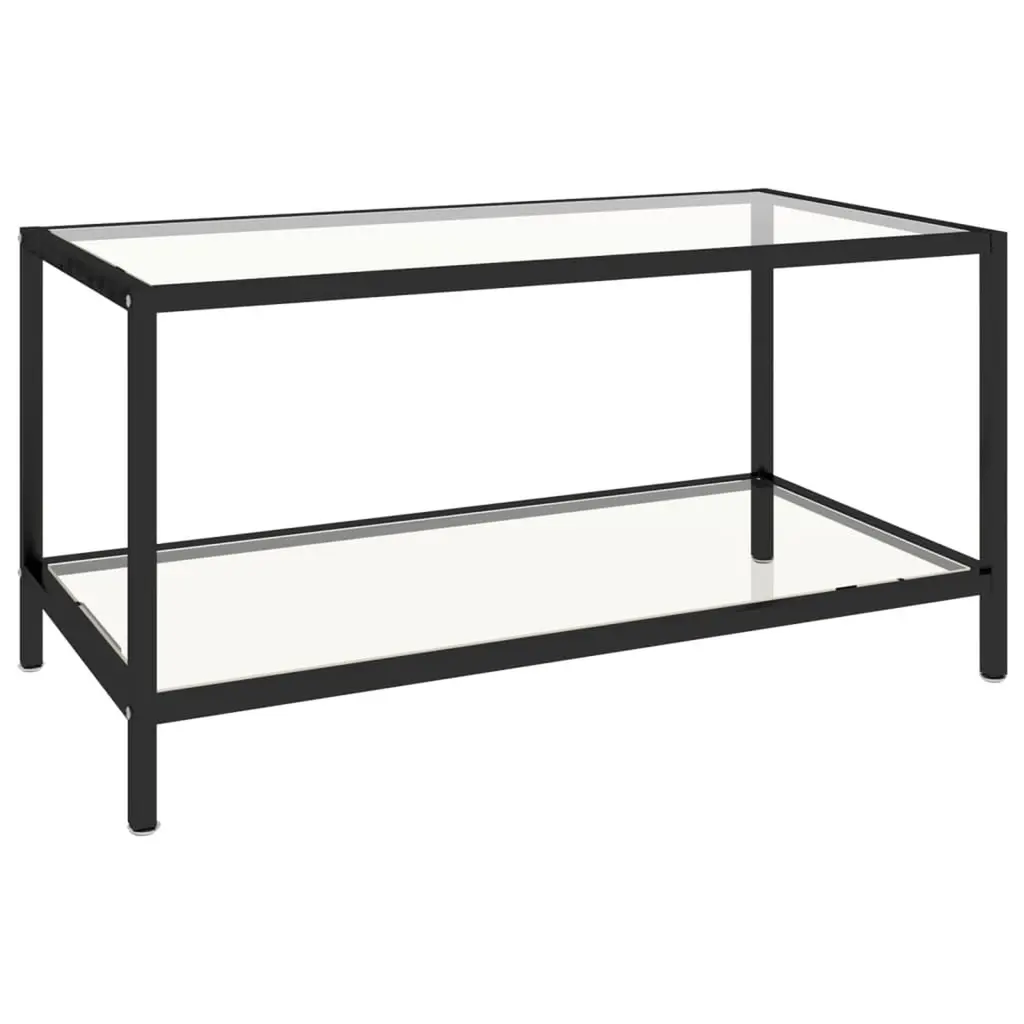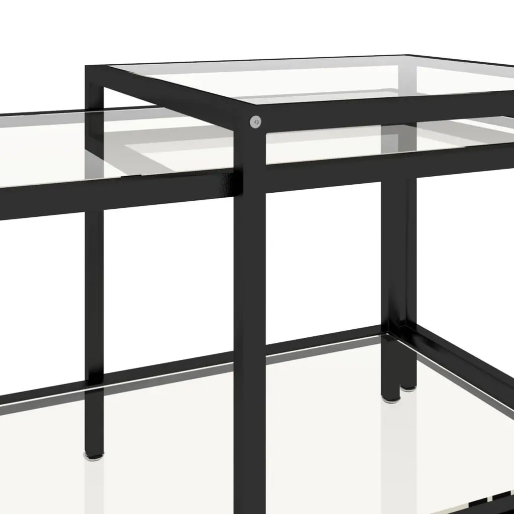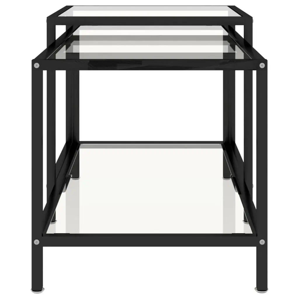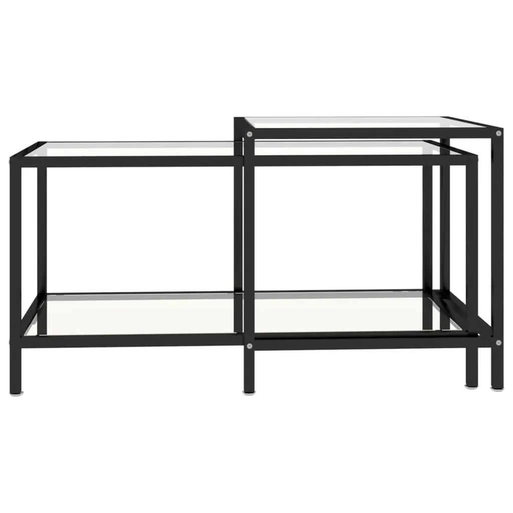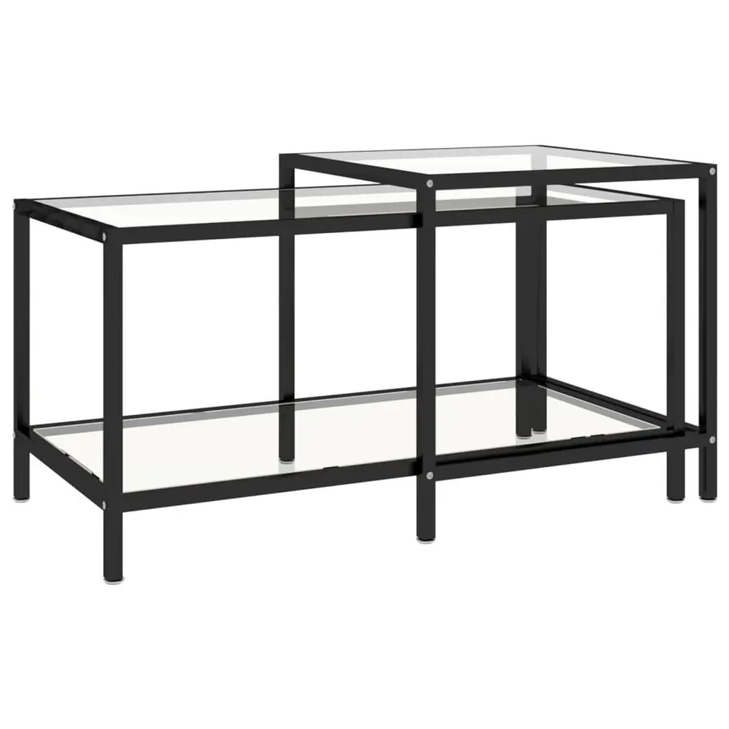 Vidaxl Tea Table Set Of 2 Transparent Tempered Glass, Powder-Coated Steel