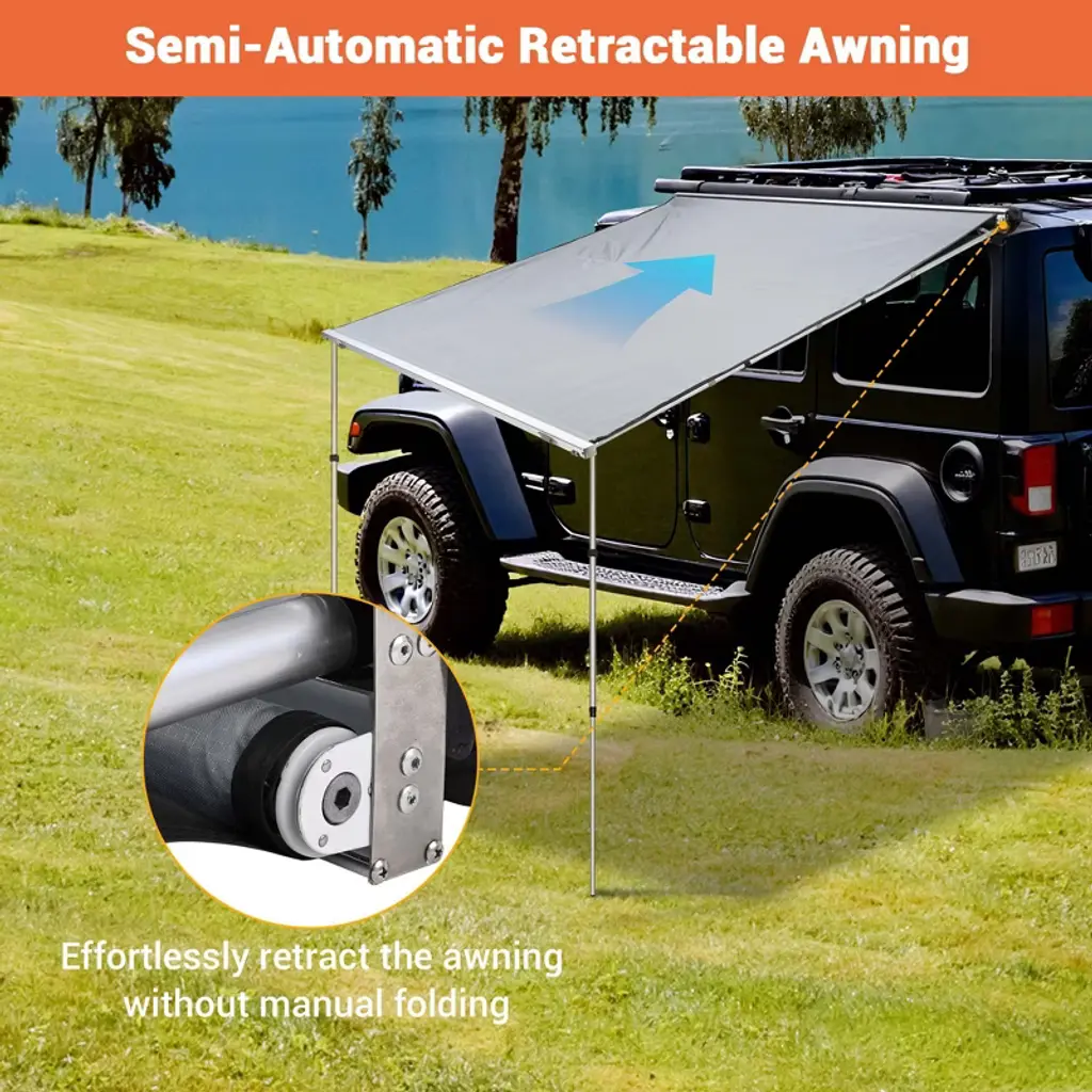 Yescom Semi-automatic Retractable 6.6'x8.4' Vehicle Awning With Blackout Coating Motor Car Side Roof Rack Overlanding Sun Shade For Outdoor Camping