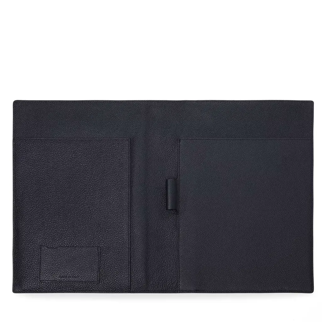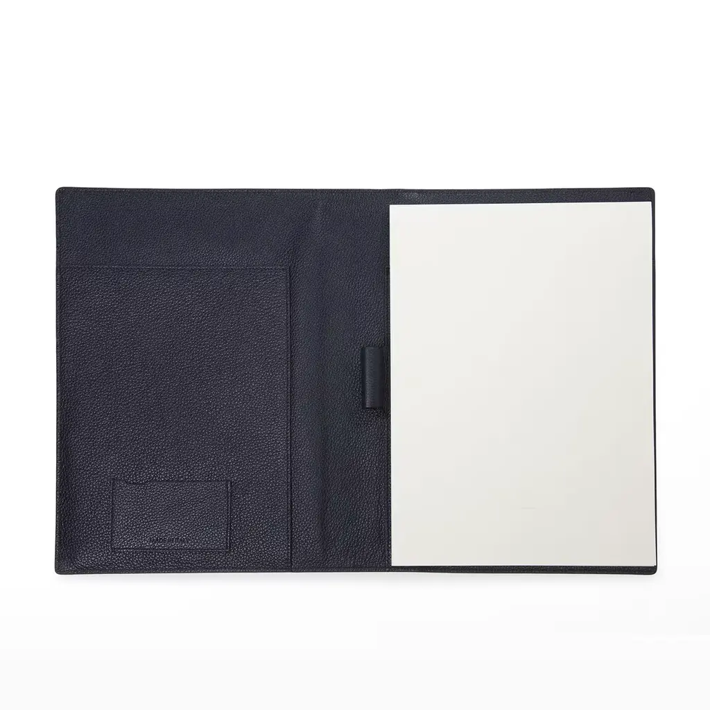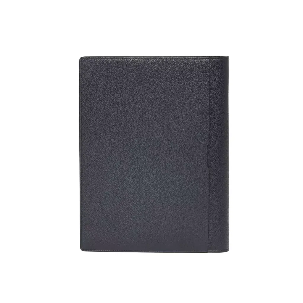 Equipped with both a pen and a cardholder, this refined clipboard folder is entirely crafted of blue leather following the manufacturing high standards distinctive of the brand. This precious item designed to fit 21 x 29.7cm sheets is available in another color variant, please ask the Concierge for details.