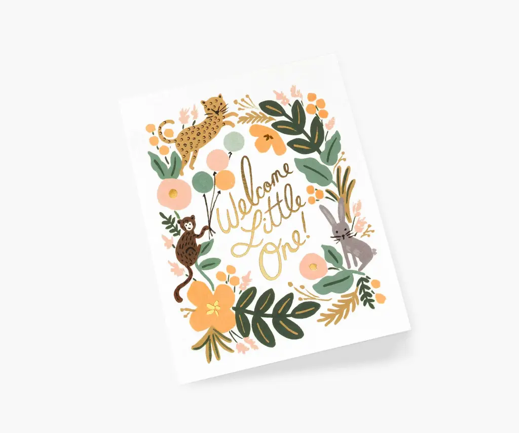 Send a note of congrats with our Menagerie Baby greeting card that features gold foil and is perfect for welcoming that little bundle of joy.
