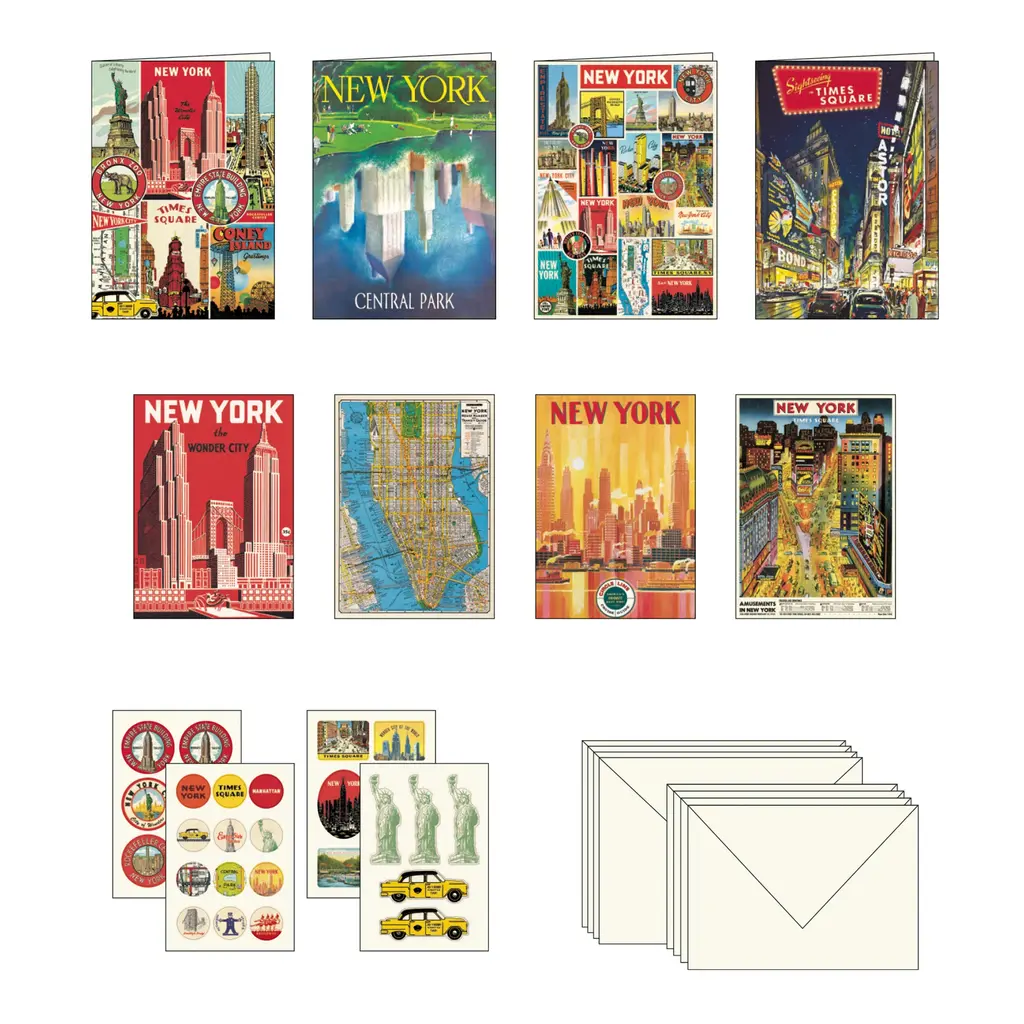 This set of eight folded notecards features vintage images of iconic NYC locations. Set includes two each of four styles and four sheets of stickers. This writing set is perfect for everyday correspondence. Each notecard measures 4h x 6"w.