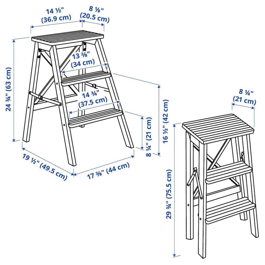 BEKVÄM Stepladder, 3 steps - beech 24 3/4 ". A step stool that makes it easier to reach things you store high up. Can be folded to save space. Solid wood is a durable natural material that you can sand and treat the surface as needed. Wall hook included.