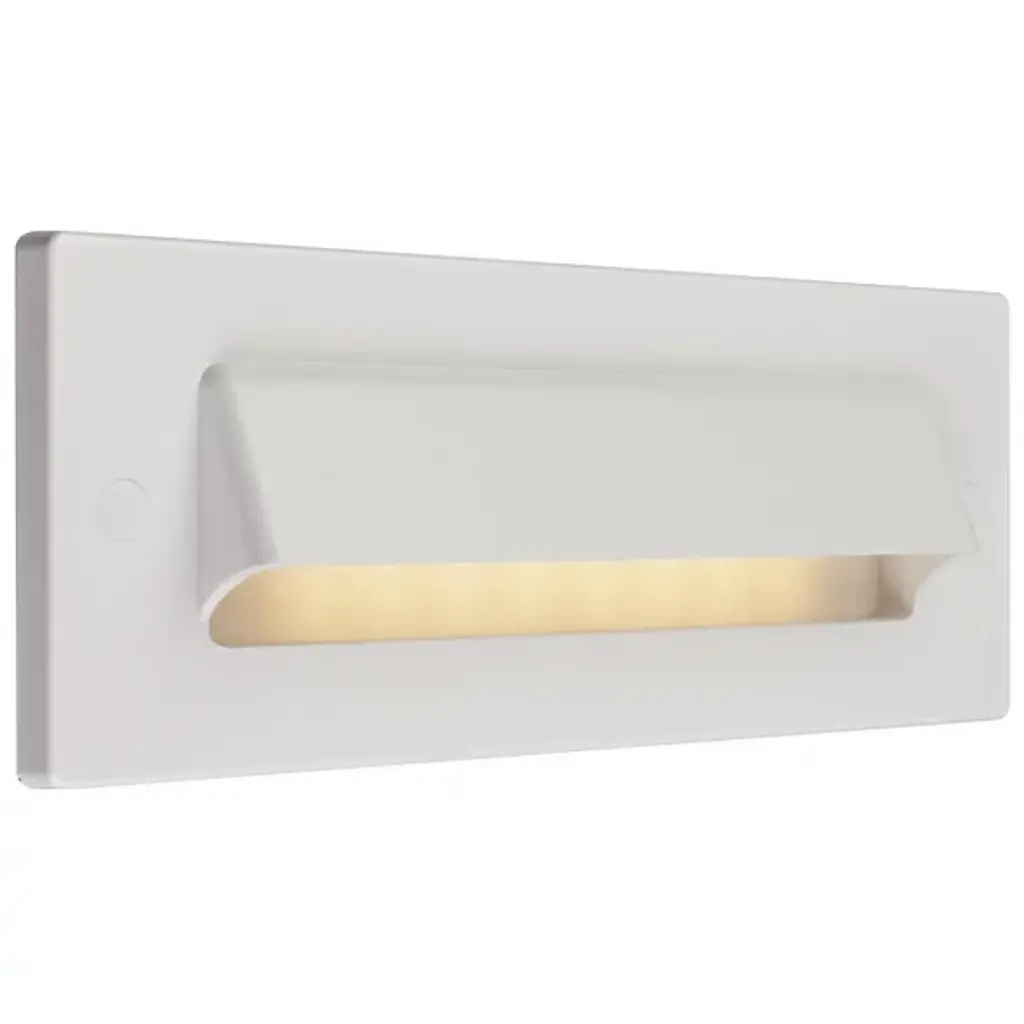 The Bruck Lighting Horizontal Cove Step Light has a partially shielded body for controlled, unobtrusive illumination along your steps and walkways. Its IP65 wet rated body, made of die cast zinc magnesium housing, contains an energy efficient LED light source that shines without any glaring hotspots. Outer trim comes in Brushed Nickel, Bronze, or White finish. Additional mounting screws for hanger bars are supplied for new construction.