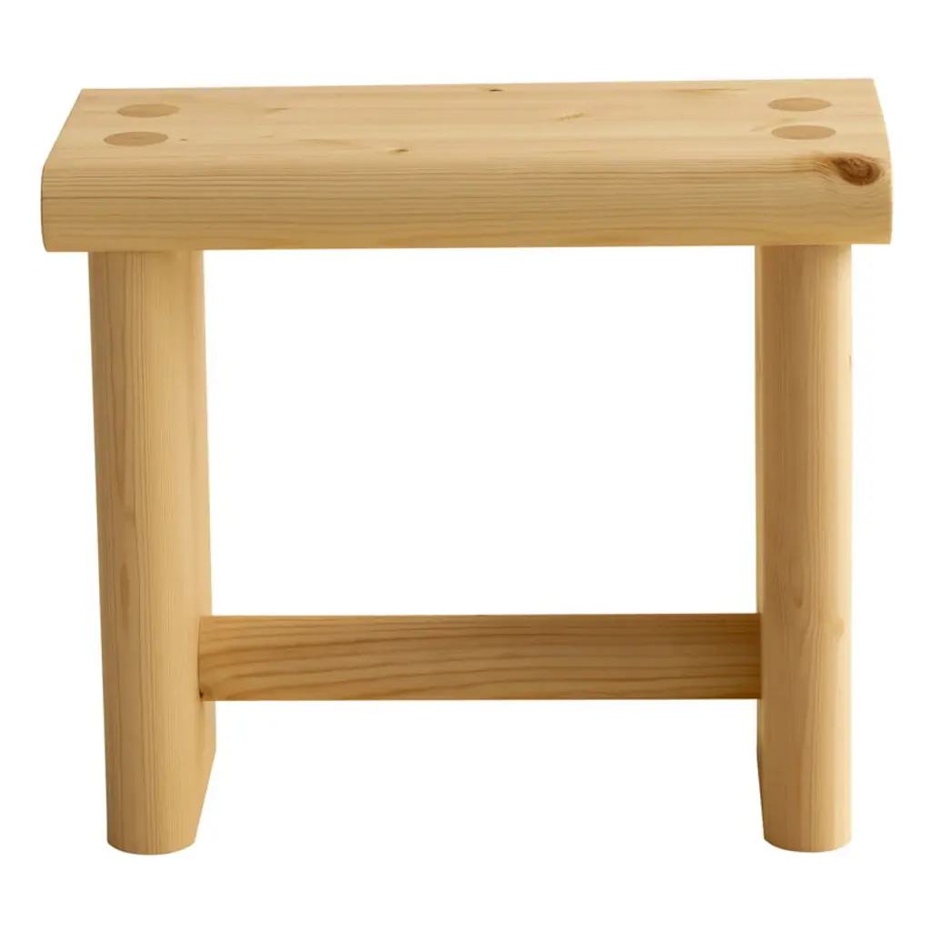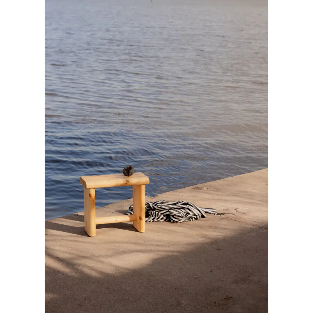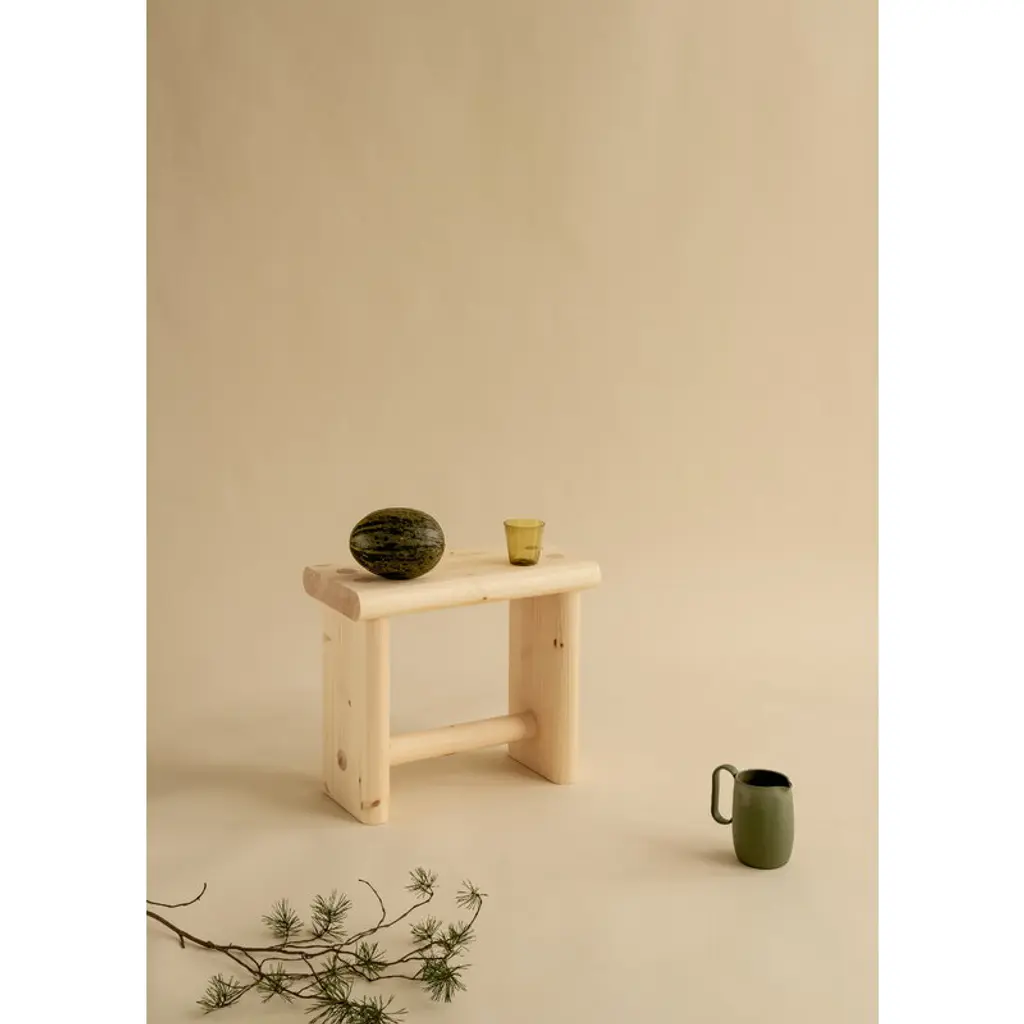 Vaarnii’s Ast stool, designed by Dimitri Bähler, is characterized by an unpretentious design that combines the rustic with the modern. The simple and robust stool consists of thick, sturdy pieces of pinewood, its only decorations being the gently rounded edges and the knots and lively grain typical of pine. The name of the stool, Ast, is German and means “branch”, alluding to the knots that underline the strong yet often overlooked material. In addition to an extra seat, Ast can be used as a nightstand or side table.
