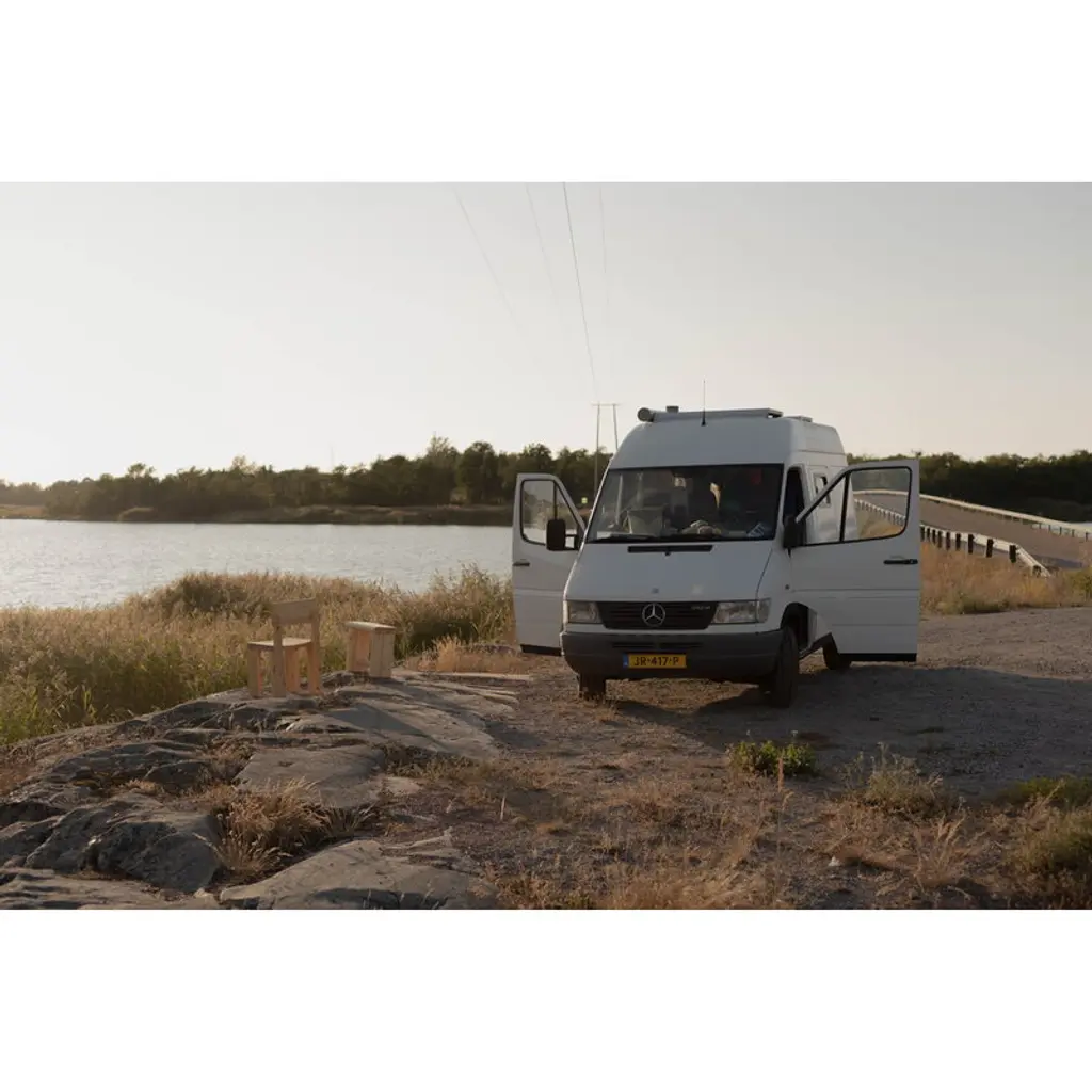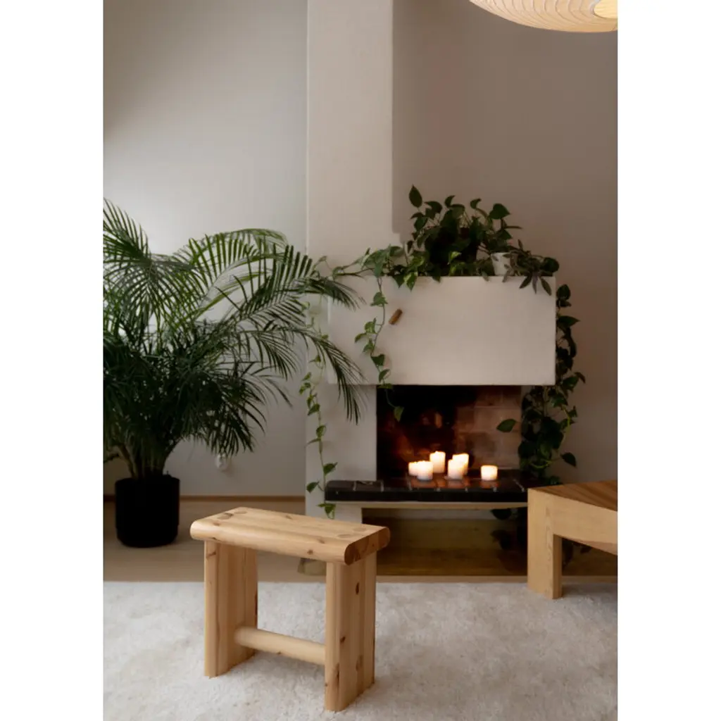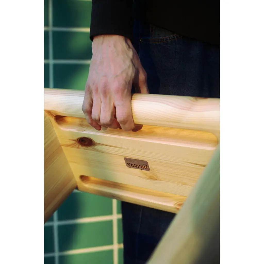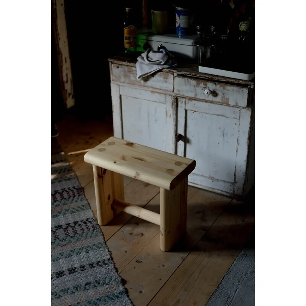 Vaarnii’s Ast stool, designed by Dimitri Bähler, is characterized by an unpretentious design that combines the rustic with the modern. The simple and robust stool consists of thick, sturdy pieces of pinewood, its only decorations being the gently rounded edges and the knots and lively grain typical of pine. The name of the stool, Ast, is German and means “branch”, alluding to the knots that underline the strong yet often overlooked material. In addition to an extra seat, Ast can be used as a nightstand or side table.