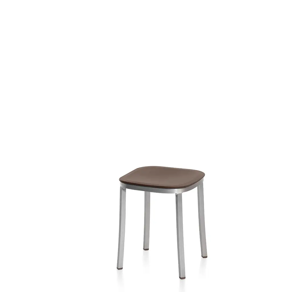 1 Inch by Jasper Morrison, 2017 For the 1 Inch collection, Jasper Morrison tapped into Emeco’s heritage in hand crafting 80% recycled aluminum, and leveraged its signature strength, light weight, and sustainability. The aluminum frame, clear anodized or black powder coated, is combined with seats in recycled plastic, sustainable plywood or upholstery for a wide variety of applications, including outdoor. Stools come in 3 heights. Made in USA. Emeco's in-house powder coat colors are available for 1 Inch chair and stool frames - please contact us for details.