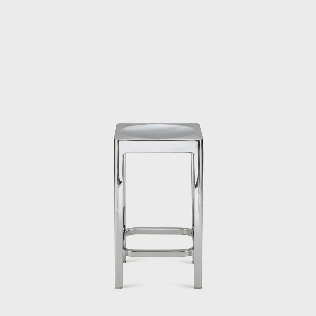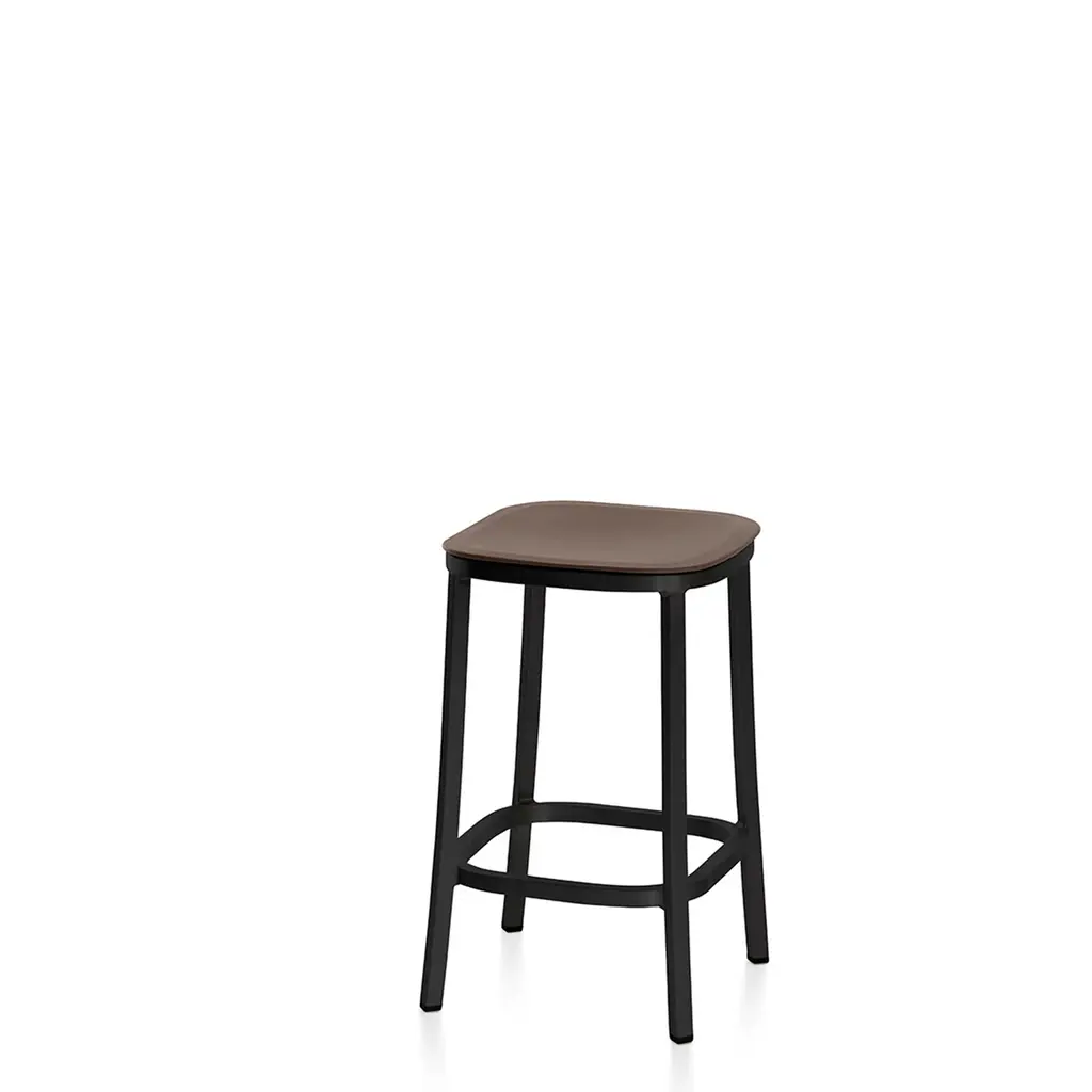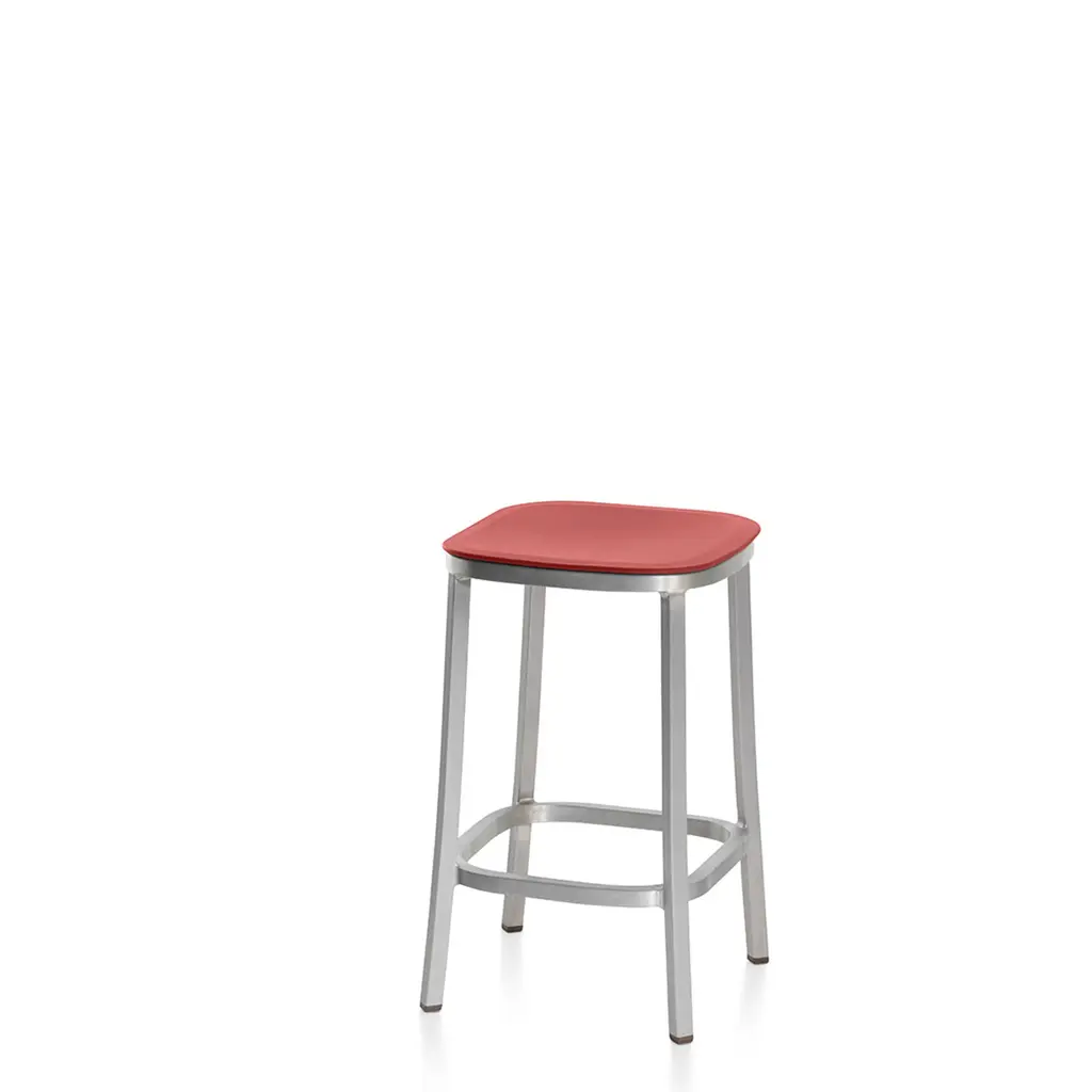 1 Inch by Jasper Morrison, 2017 For the 1 Inch collection, Jasper Morrison tapped into Emeco’s heritage in hand crafting 80% recycled aluminum, and leveraged its signature strength, light weight, and sustainability. The aluminum frame, clear anodized or black powder coated, is combined with seats in recycled plastic, sustainable plywood or upholstery for a wide variety of applications, including outdoor. Made in USA. Emeco's in-house powder coat colors are available for 1 Inch chair and stool frames - please contact us for details.