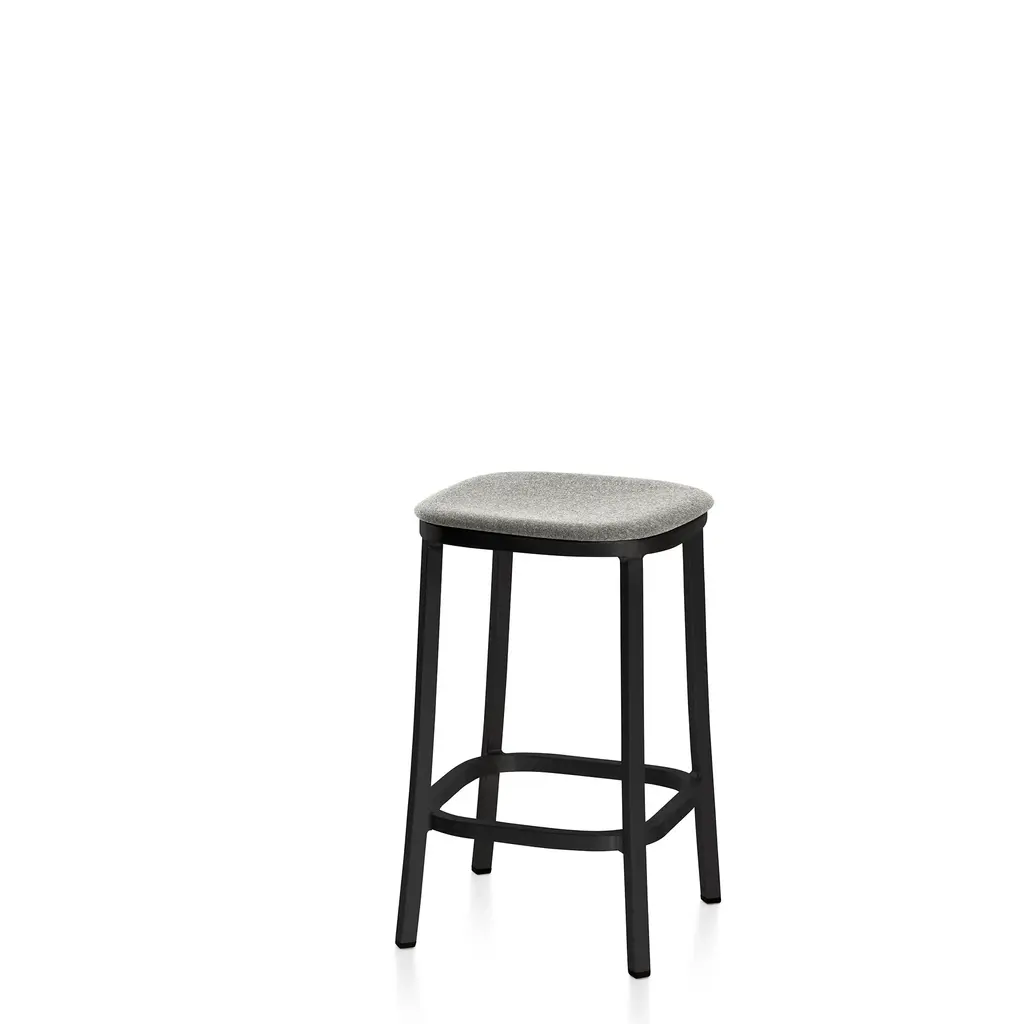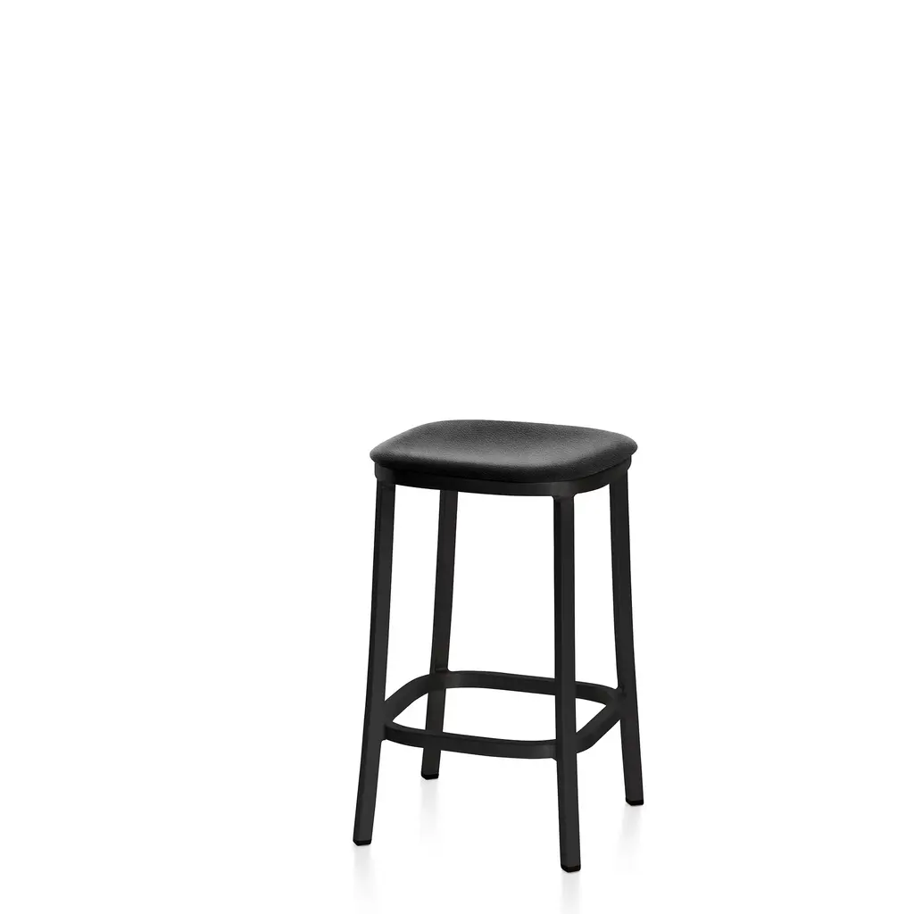 1 Inch by Jasper Morrison, 2017 For the 1 Inch collection, Jasper Morrison tapped into Emeco’s heritage in hand crafting 80% recycled aluminum, and leveraged its signature strength, light weight, and sustainability. The aluminum frame, clear anodized or black powder coated, is combined with upholstered seats in leather or textile for a wide variety of applications. COM/COL also offered - please contact us for custom textiles. Stools come in 3 heights. Made in USA. Emeco's in-house powder coat colors are available for 1 Inch chair and stool frames - please contact us for details.