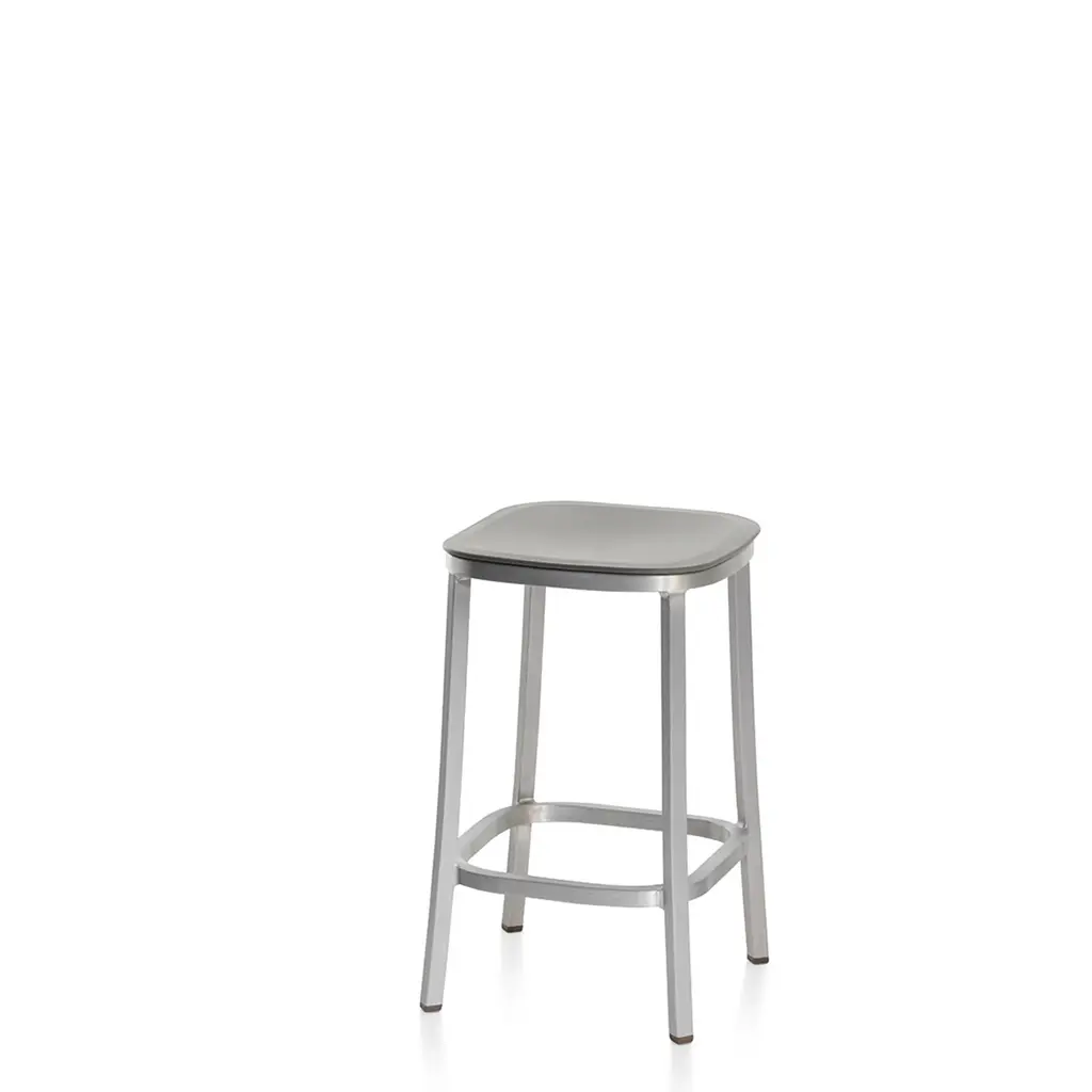 1 Inch by Jasper Morrison, 2017 For the 1 Inch collection, Jasper Morrison tapped into Emeco’s heritage in hand crafting 80% recycled aluminum, and leveraged its signature strength, light weight, and sustainability. The aluminum frame, clear anodized or black powder coated, is combined with upholstered seats in leather or textile for a wide variety of applications. COM/COL also offered - please contact us for custom textiles. Stools come in 3 heights. Made in USA. Emeco's in-house powder coat colors are available for 1 Inch chair and stool frames - please contact us for details.