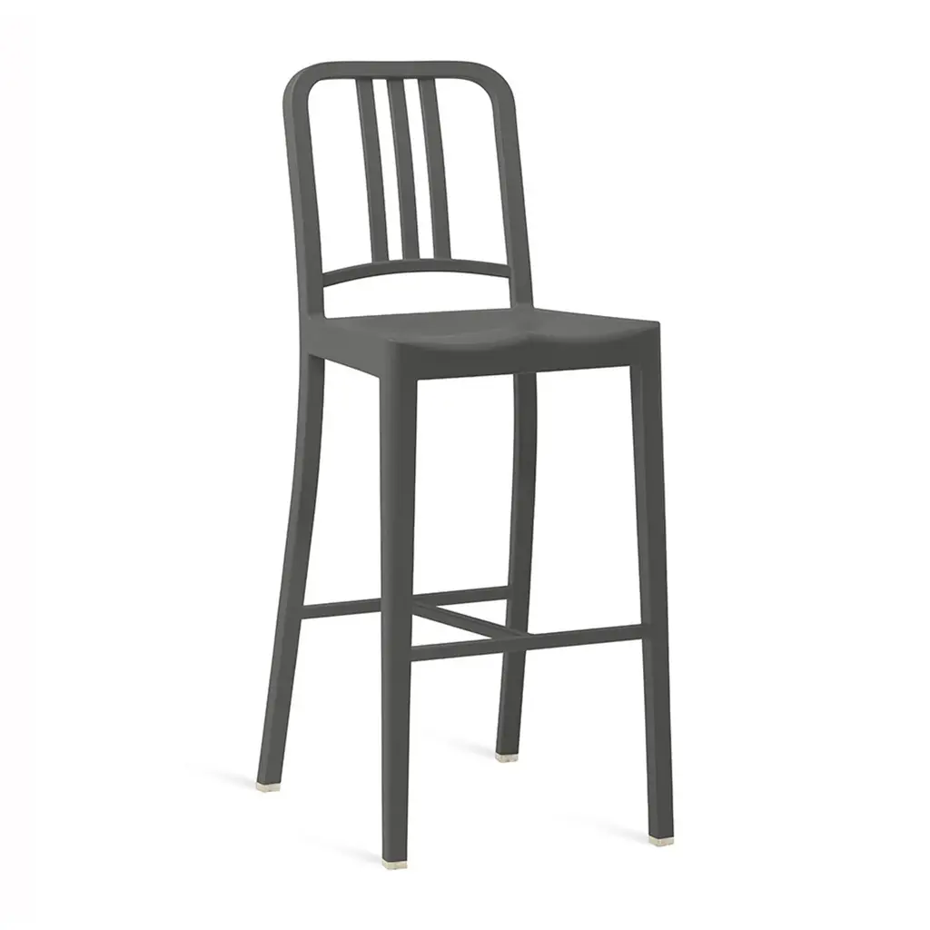 Like the original 111 Navy chair, the 111 Navy Stool from Emeco is an engineering success, designed to stand up to heavy use, and made right here in the United States. An innovative collaboration between Coca-Cola and Emeco, the 111 Navy Stool is solving an environmental problem: the discarding of plastic soda bottles that pollute our environment. The result is utilizing 150 discarded PET bottles towards the creation of the stool, saving millions of Coca-Cola bottles from the landfill each year. The simple silhouette and variety of colorful finishes let you effortlessly match to fit your interior needs. Highlights
