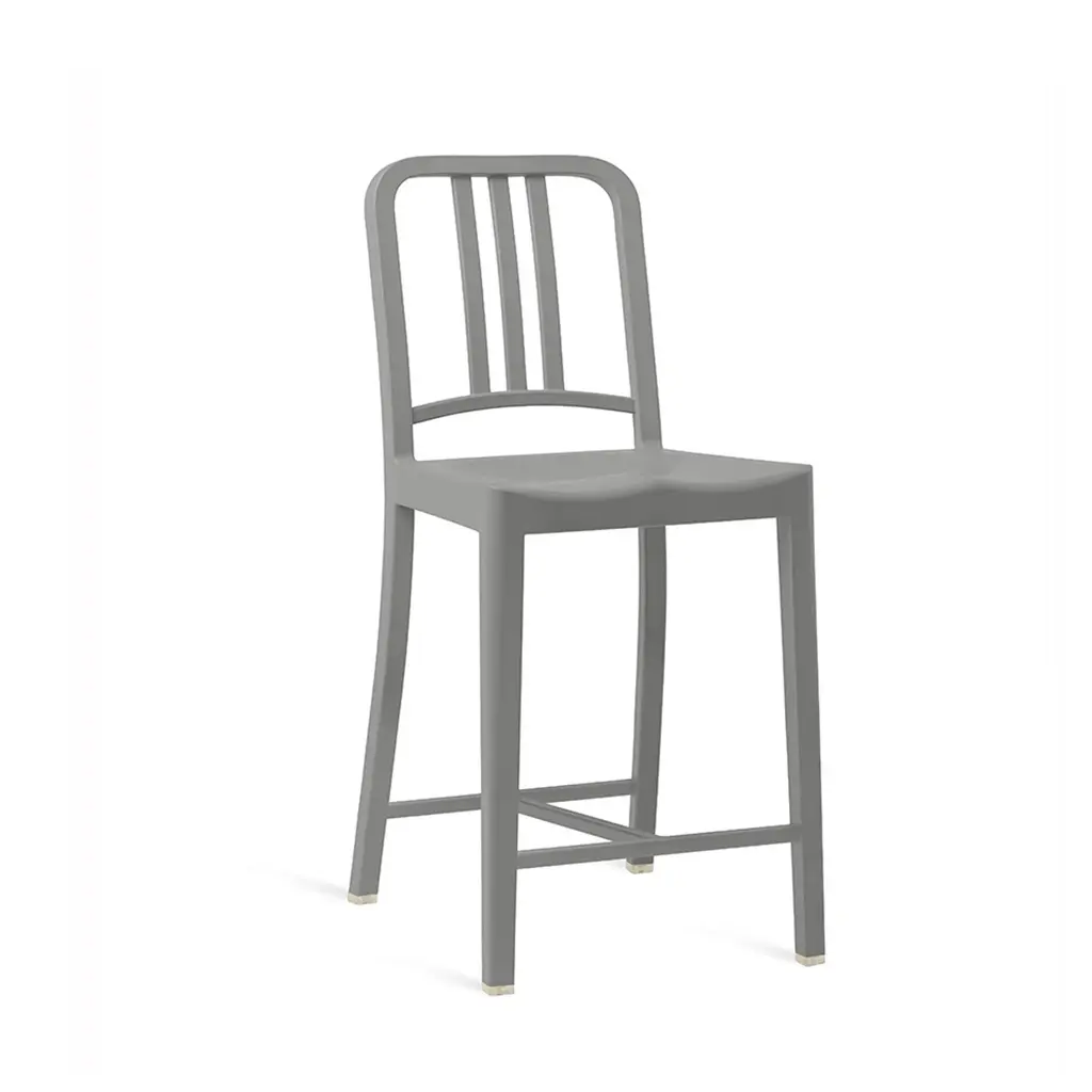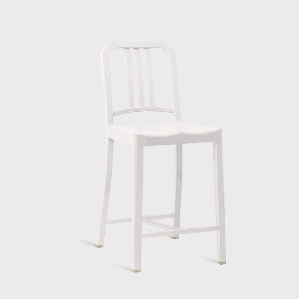 Like the original 111 Navy chair, the 111 Navy Stool from Emeco is an engineering success, designed to stand up to heavy use, and made right here in the United States. An innovative collaboration between Coca-Cola and Emeco, the 111 Navy Stool is solving an environmental problem: the discarding of plastic soda bottles that pollute our environment. The result is utilizing 150 discarded PET bottles towards the creation of the stool, saving millions of Coca-Cola bottles from the landfill each year. The simple silhouette and variety of colorful finishes let you effortlessly match to fit your interior needs. Highlights