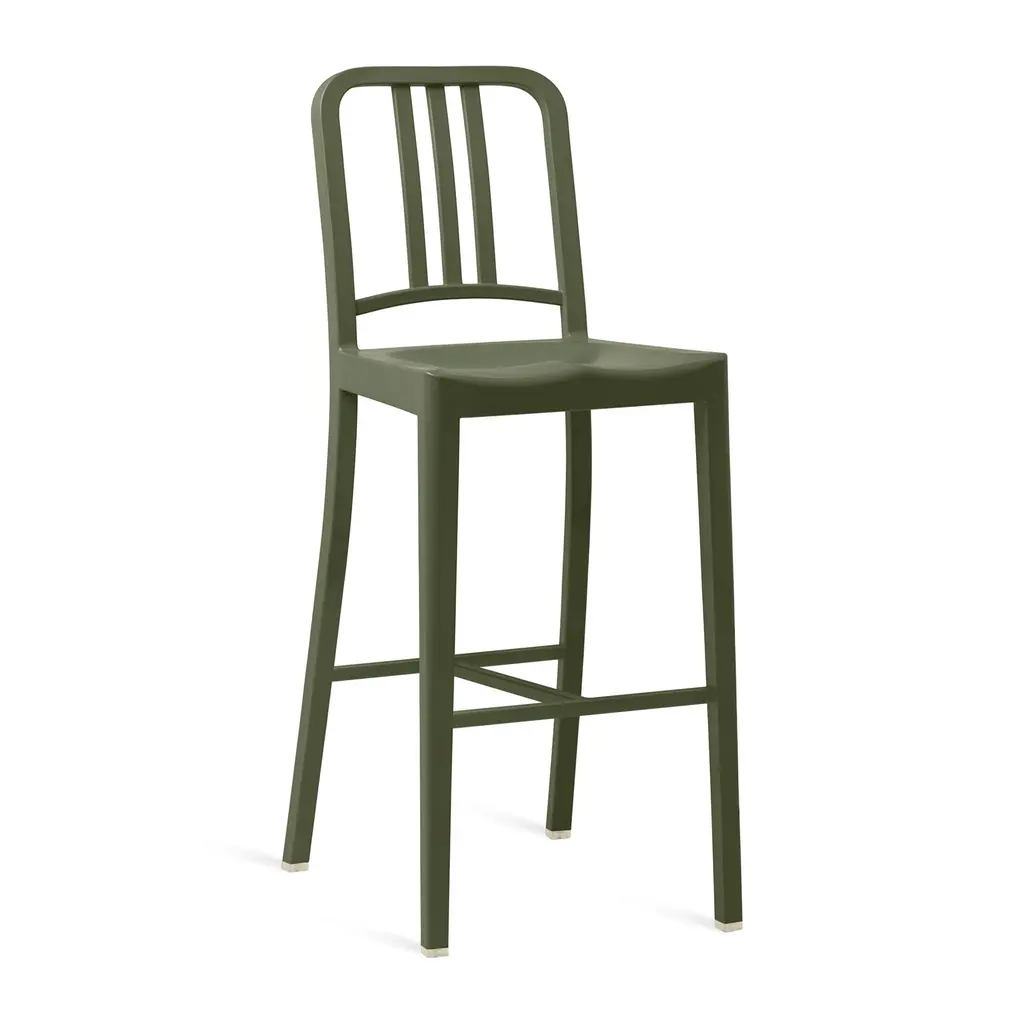 Like the original 111 Navy chair, the 111 Navy Stool from Emeco is an engineering success, designed to stand up to heavy use, and made right here in the United States. An innovative collaboration between Coca-Cola and Emeco, the 111 Navy Stool is solving an environmental problem: the discarding of plastic soda bottles that pollute our environment. The result is utilizing 150 discarded PET bottles towards the creation of the stool, saving millions of Coca-Cola bottles from the landfill each year. The simple silhouette and variety of colorful finishes let you effortlessly match to fit your interior needs. Highlights