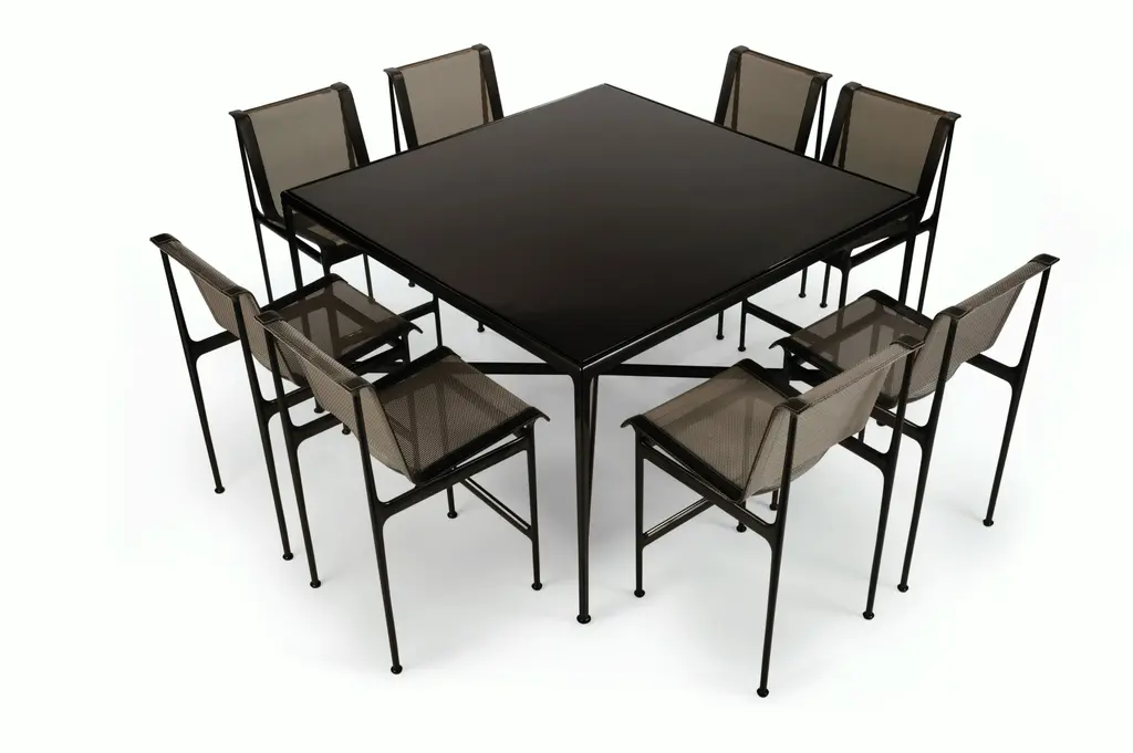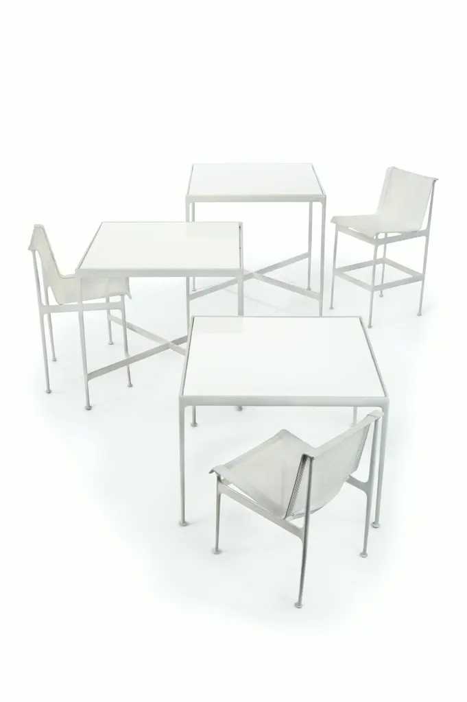 Richard Schultz's outdoor stools have been setting the scene for modern dining since 1966. The aluminum frame is resilient to weather and wind, while the signature mesh seat permits airflow to keep you cool.In the late 1950s, Richard Schultz received an envelope filled with rusted bolts from Florence Knoll, who was spending time at her Florida home. She tasked Schultz with the job of designing elegant outdoor furniture that could withstand corrosive sea air, season after season. Introduced in March 1966, the Leisure Collection, now called the 1966 Collection, was described by Schultz as “a breath of fresh air” for modernists. “Outdoor chairs should be enhanced by the elements,” he said. “Wind, sun, and rain should pass freely through, and they should breathe.” And breathe they do, all these years later.