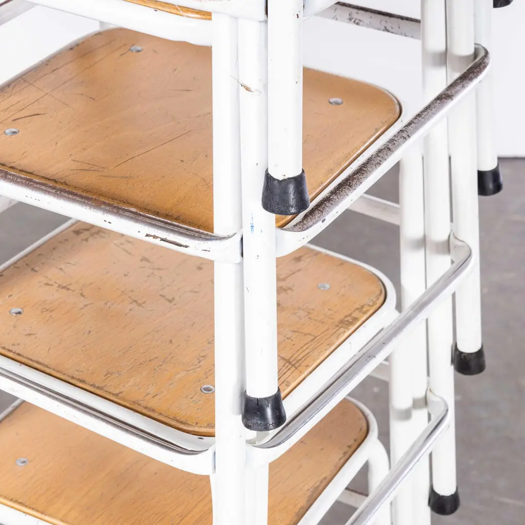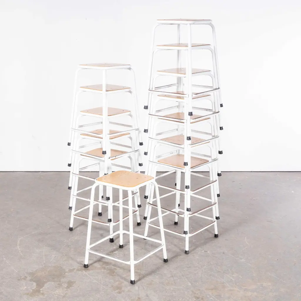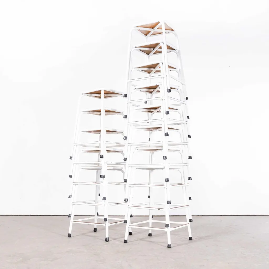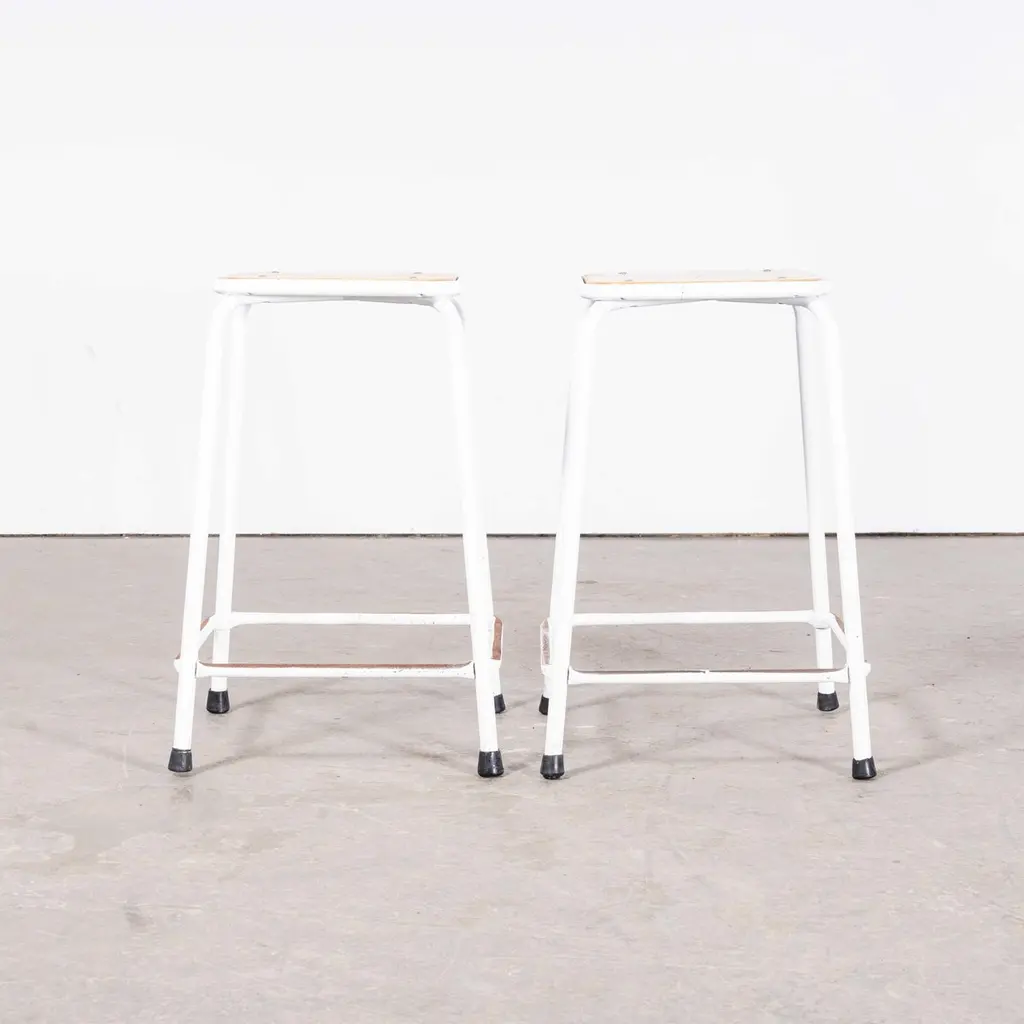 1970’s French White Laboratory Stools – Quantity Available1970’s French White Laboratory Stools – Quantity Available. Good honest lab stools, heavy steel frames with solid heavy birch ply seats. We clean them and check all fixings, they are good to go. Seat Height 59cm.WORKSHOP REPORTOur workshop team inspect every product and carry out any needed repairs to ensure that everything leaves us serviced and maintained ready for many more years of life. All of our vintage products show the rich beauty and history of their life with the knocks and bumps of many years of use and we try to minimise restoration to keep every piece as original as possible.Date: 1970'sMaker: Industrial production - FranceDimensions:L 40 x W 40 x H 59 cm