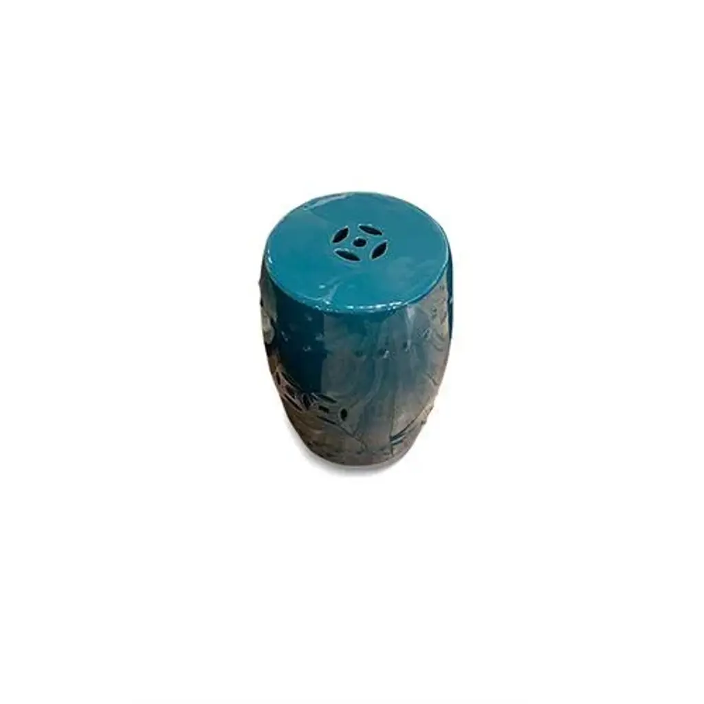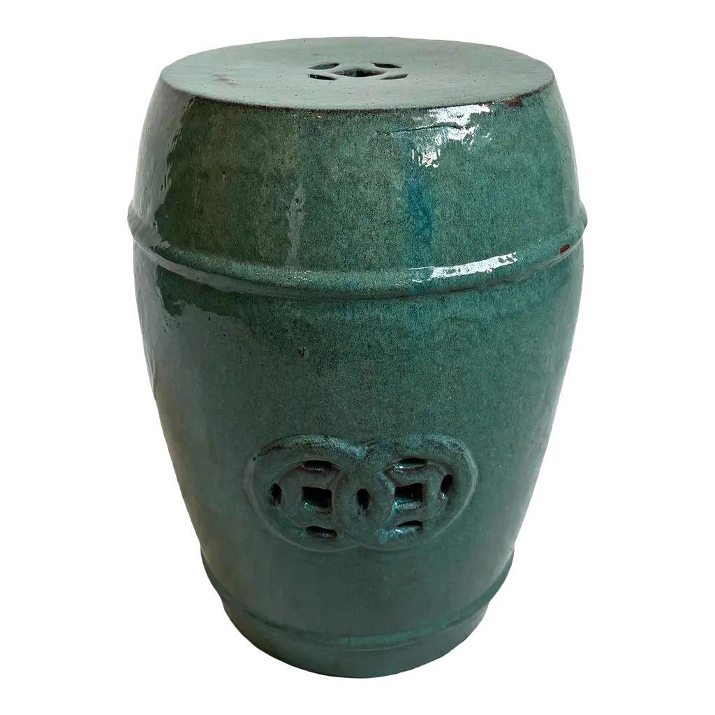 Dark Teal Color garden stool with a glossy finish. Great for the backyard and indoors a great piece to brighten up a room. No maker marked. Smooth texture. Dimensions: 12.5"W x 12.5"D x 16.5"H