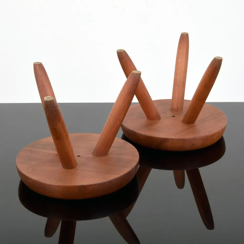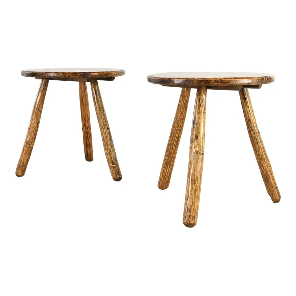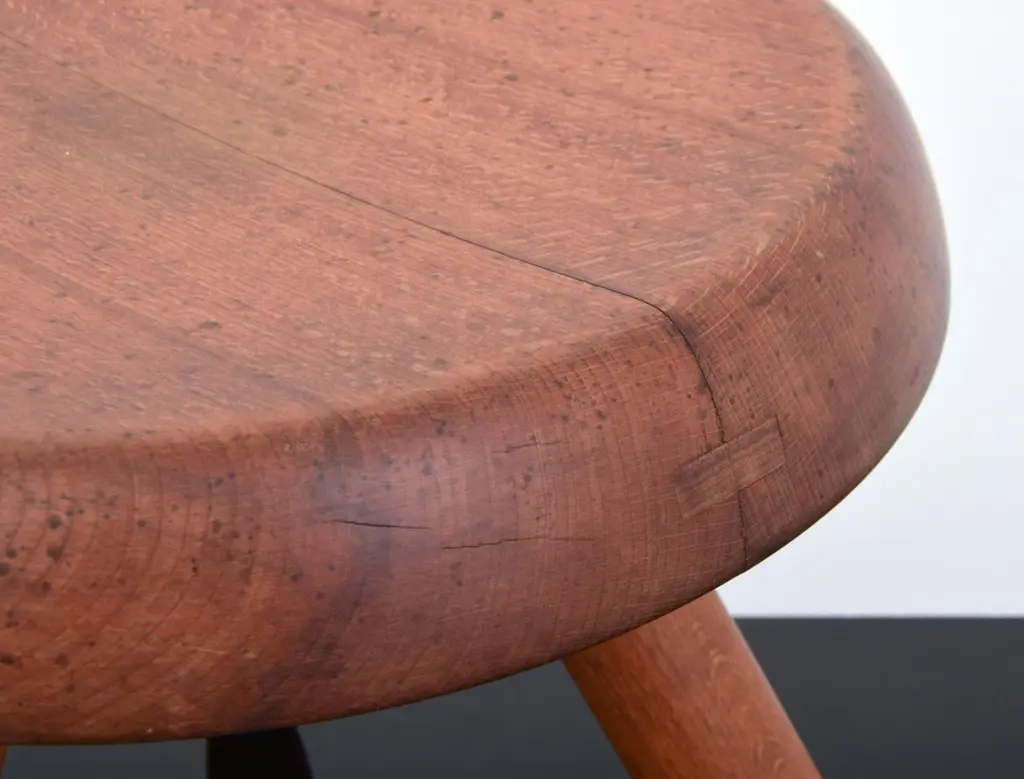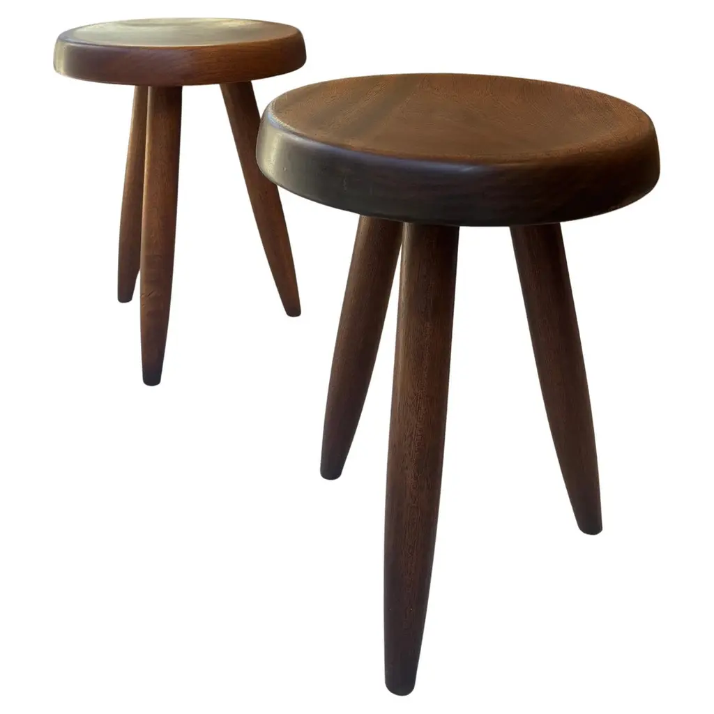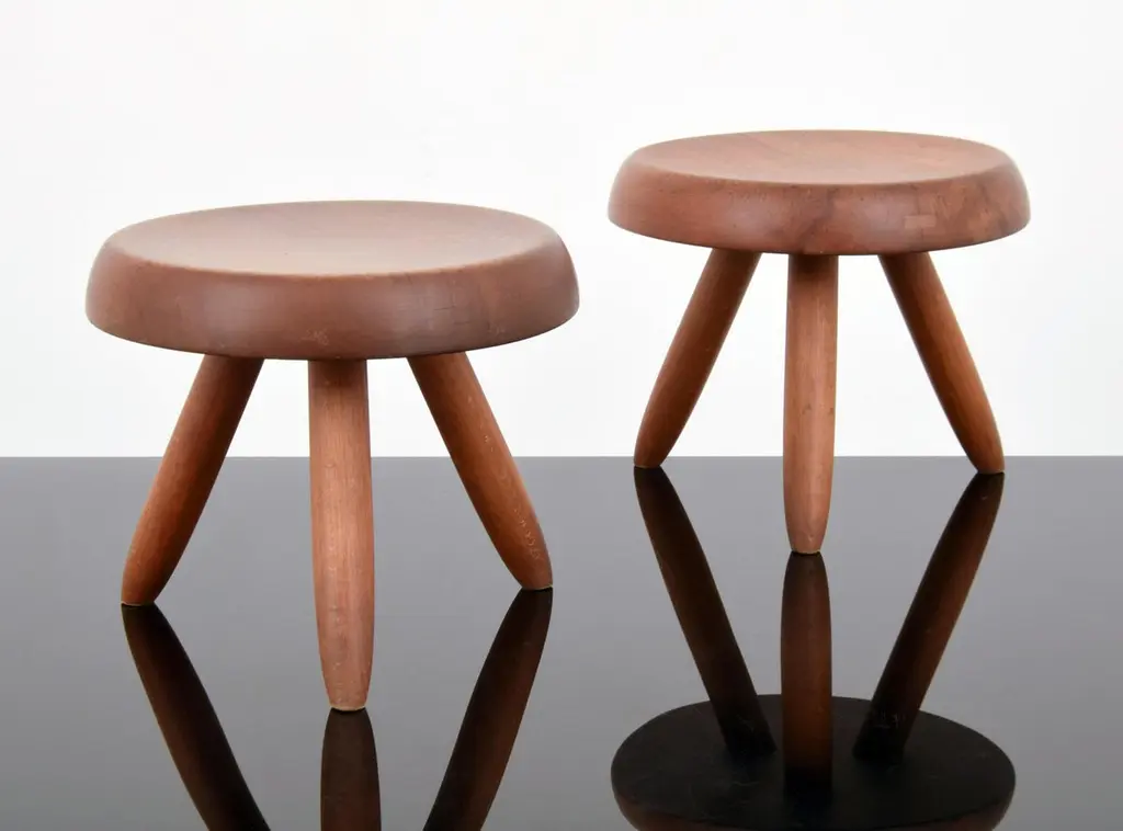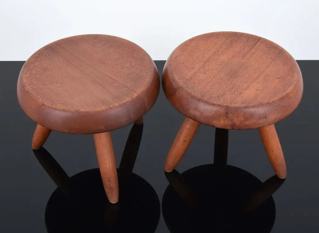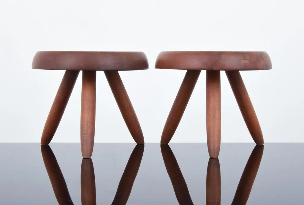 Artist/Designer; Manufacturer: Charlotte PerriandMarking(s); notes: no marking(s) apparentCountry of origin; materials: France; beechDimensions (H, W, D): 11"h, 13"dia eachAdditional Information: Provenance: Private Collection, Cannes, France. We have two stools available, priced each.Charlotte Perriand’s low stools exemplify the refined simplicity and natural materiality central to her design philosophy. Crafted in solid beech with a softly rounded seat and subtly tapered legs, these stools reflect the influence of Japanese design that Perriand embraced during her time in Japan in the 1940s. Their sculptural form and understated elegance make them highly versatile — perfect as accent seating, bedside tables, or functional sculpture in a minimal, wabi-sabi, or organic modern interior.