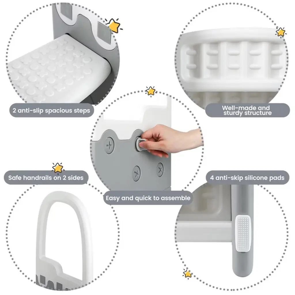 2 Step Stools For Kids, Anti-slip Step Stool For Bathroom Sink, Toddler Stool For Kitchen Counter, Potty Training Toilet Stool With Handrail