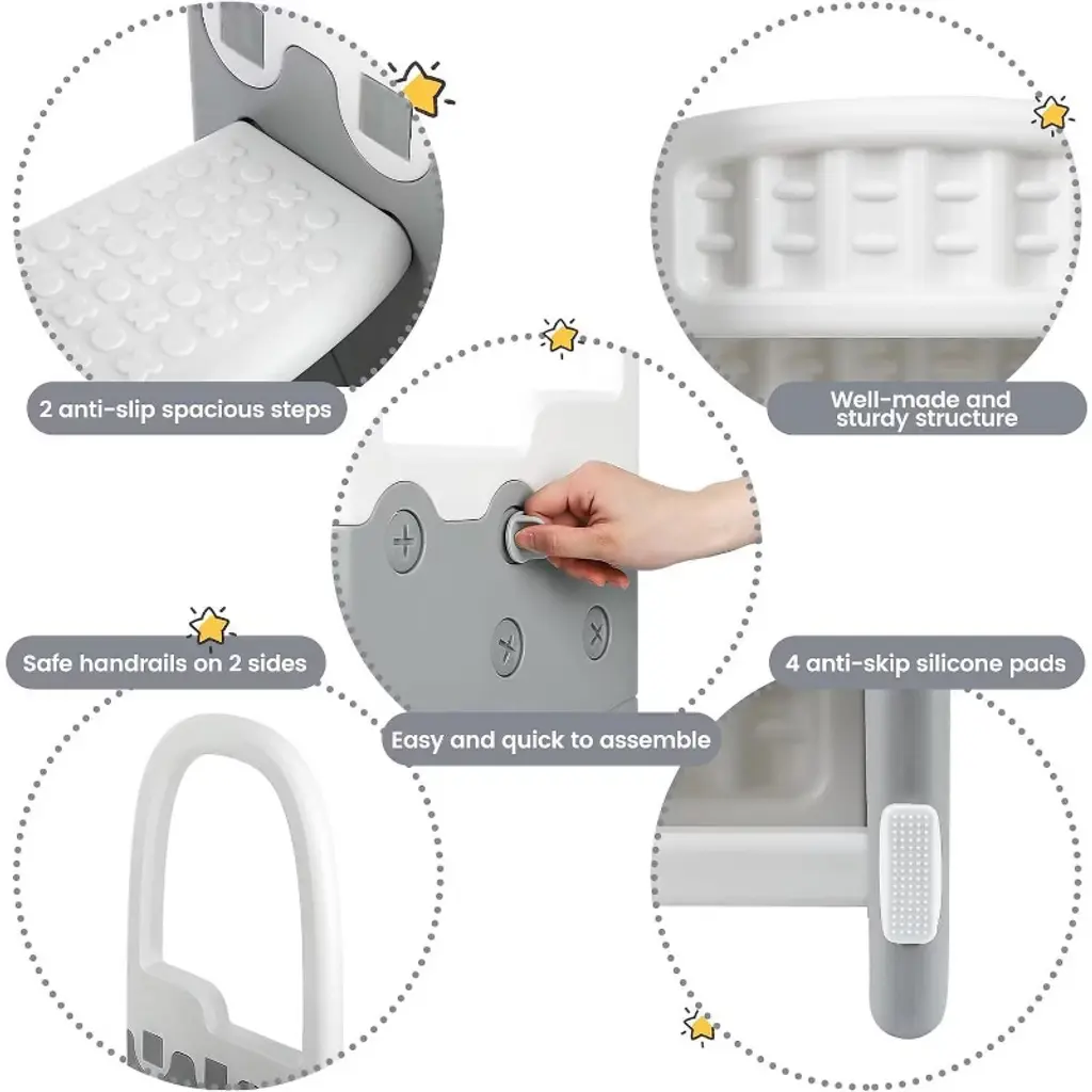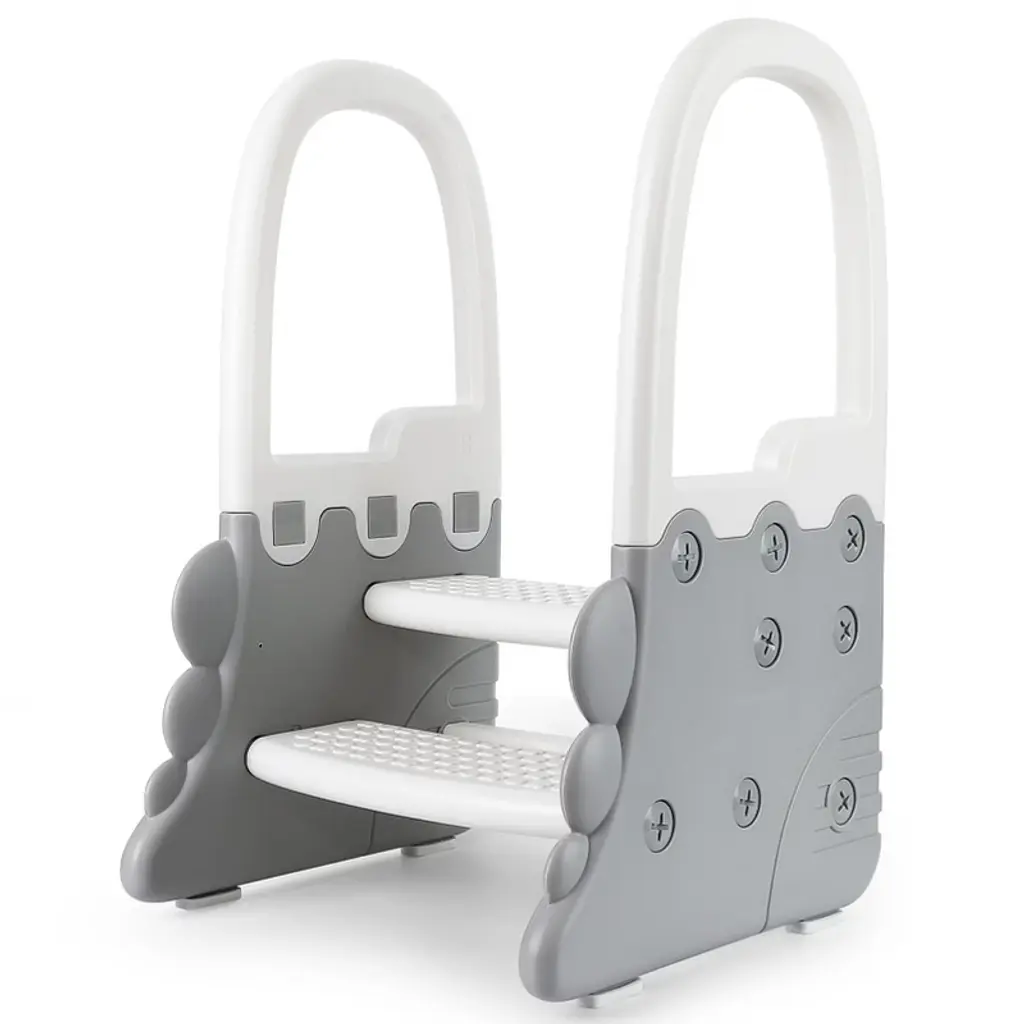 2 Step Toddler Stool With Handrail, Non-slip Kids Step Stool For Bathroom Sink, Potty Training, Safe Stool For Kitchen Counter, Dual Height Design