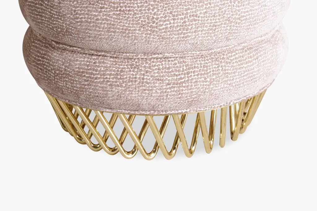 Inspired by the candid and sophisticated Audrey Hepburn, Ottiu created the Audrey Mid-Century Modern stool. She was recognized as a film and fashion icon during Hollywood’s golden age but also as humanitarian, devoting much of her later life to UNICEF. This piece, extremely delicate and elegant, is made of polished brass and cotton velvet upholstery with golden pining. It is the perfect decor piece for your home.The Audrey stool is part of the Century Collection. Audrey Stool (Fabric) was designed by Ottiu and is part of the Century Collection.