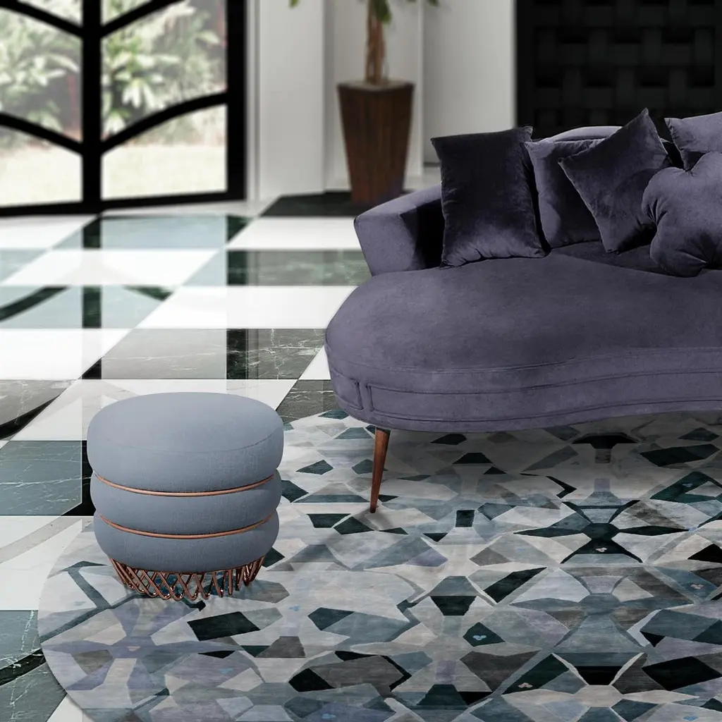 21st Century Audrey Stool Cotton Velvet Brass Made In Portugal By Ottiu