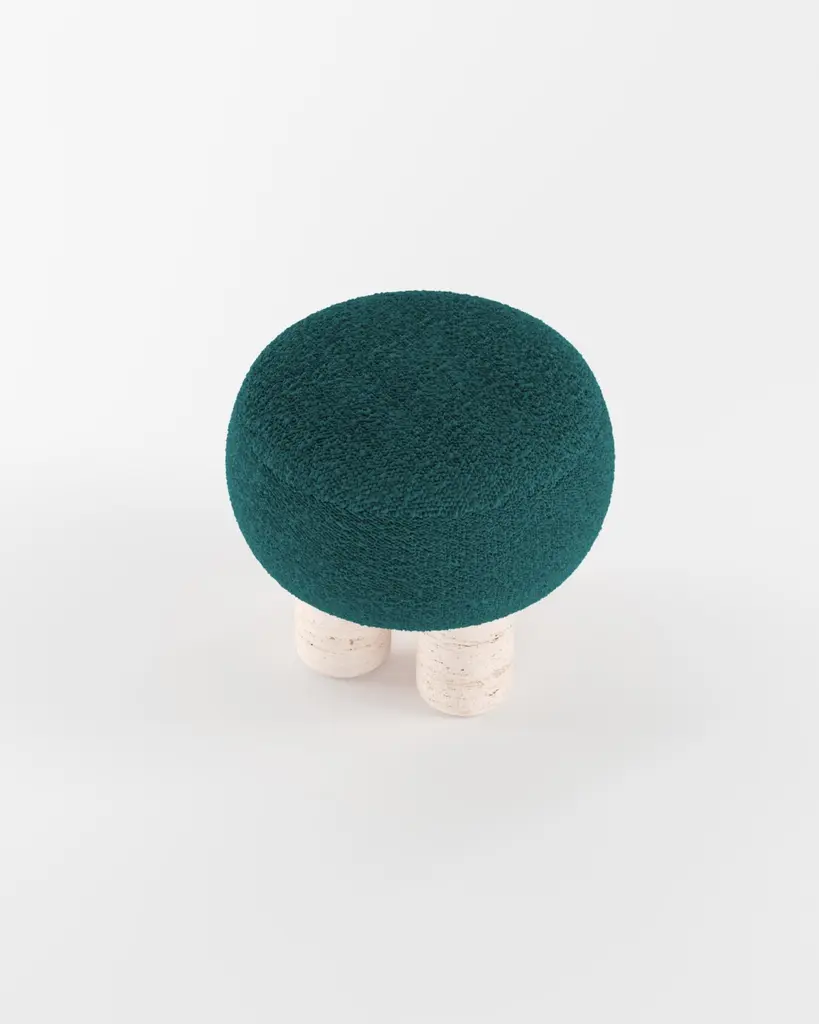 21st Century Designed By Saccal Design House Hygge Stool Bouclé Travertino