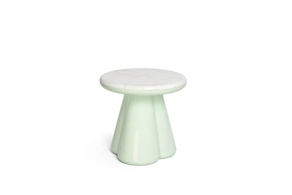 Anodo design by Elena Salmistraro, product by Scapin CollezioniLimited EditionGlossy or matte, Anodo’s large tripartite base in lacquered polyurethane is now available in eight new colours that reflect the nuances of the marble top. This choice seeks a monochromatic effect that emphasises the sculptural aspect of this highly versatile product, which can be a coffee table or even a stool. Eight top finishes, designed to furnish private residences and public spaces: white Carrara marble, white travertine, classic travertine, Billiemi grey marble, black Marquinia marble, red Levanto marble, white Pinta Verde marble, Verde Alpi marble.New Atomic Age CollectionDesigner and artist Elena Salmistraro takes her inspiration from the historical period between the 1940s and 1960s. During those years the world was a victim of the Cold War and afraid of the imminent nuclear catastrophe, but, despite the scary climate, the public found the strength to imagine a better future.Bold and graphic shapes linked to the fear of the atom were recurrent in the artistic expression of the time as a symbol of the common will to change people’s destiny and defeat the overwhelming sense of fear. The Limited Edition collection by Elena Salmistraro reflects these neo-tribal and post atomic symbols through precious inlays and innovative resin carvings on marble surfaces. The new Anodo synthesised the neo-tribal, post-atomic language in almost monochromatic furnishings, with calm and elegant nuances.