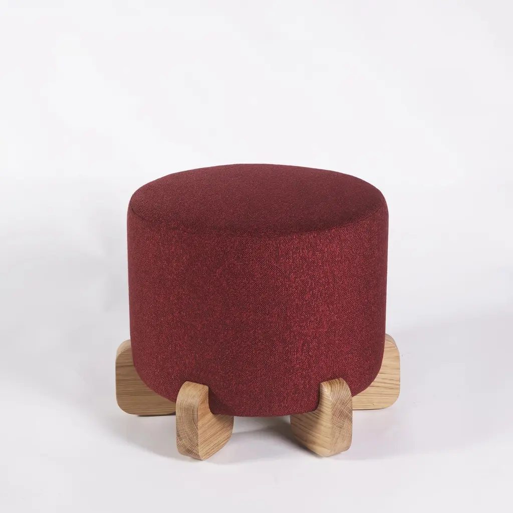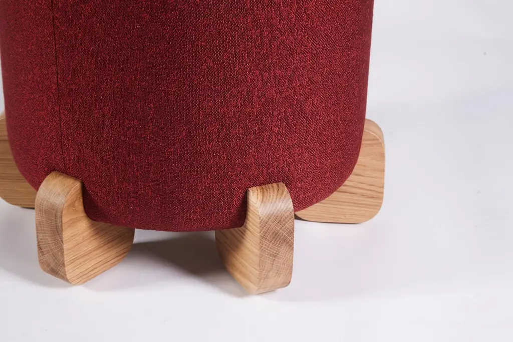 Ipanema Stool, Natural Oak Feet by DuisttFollowing the Ipanema series that refers to the imagination of the well-known sidewalk in Rio de Janeiro. The Ipanema Stools, come in two versions upholstered in a deep red woven fabric, but with two distinct bases: solid natural oak and high gloss red lacquer.This piece is crafted with a new, vigorous approach, finding the perfect proportions and providing both comfort and coziness.Shown in special fabric and natural oak feet.Custom sizes and materials are available upon request, and production lead time is 8 to 10 weeks. Designed and manufactured by Duistt in Portugal - Europe. Duistt arose in 2014 from the will and desire to produce high-end furniture pieces with special attention to quality and timeless design. Blending ancient knowledge and techniques with contemporary aesthetics, Duistt’s design approach elevates the user experience, guaranteeing them delightful pieces crafted with art that are unique and can last generations.