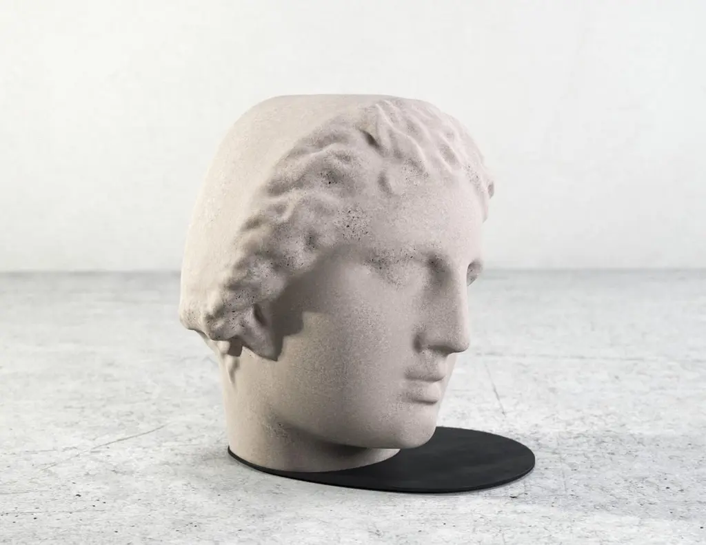 Surrealism, primitivism, metaphysics and brutalism. Art together with architecture and design build a scenario of inspirations and continuous references through which the material rises to an expressive language, ready to welcome and rework formal suggestions of different origins. Betti and Fusto are the series that introduce the new design approach. A human face with mysterious origins and a clear classical reference to soften the brutalism of concrete.Material:Concrete and metal baseColor available: Ink, silver, fir, dark chocolate, powder, brick, ultramarine and creamSome of the images enclosed are rendering.