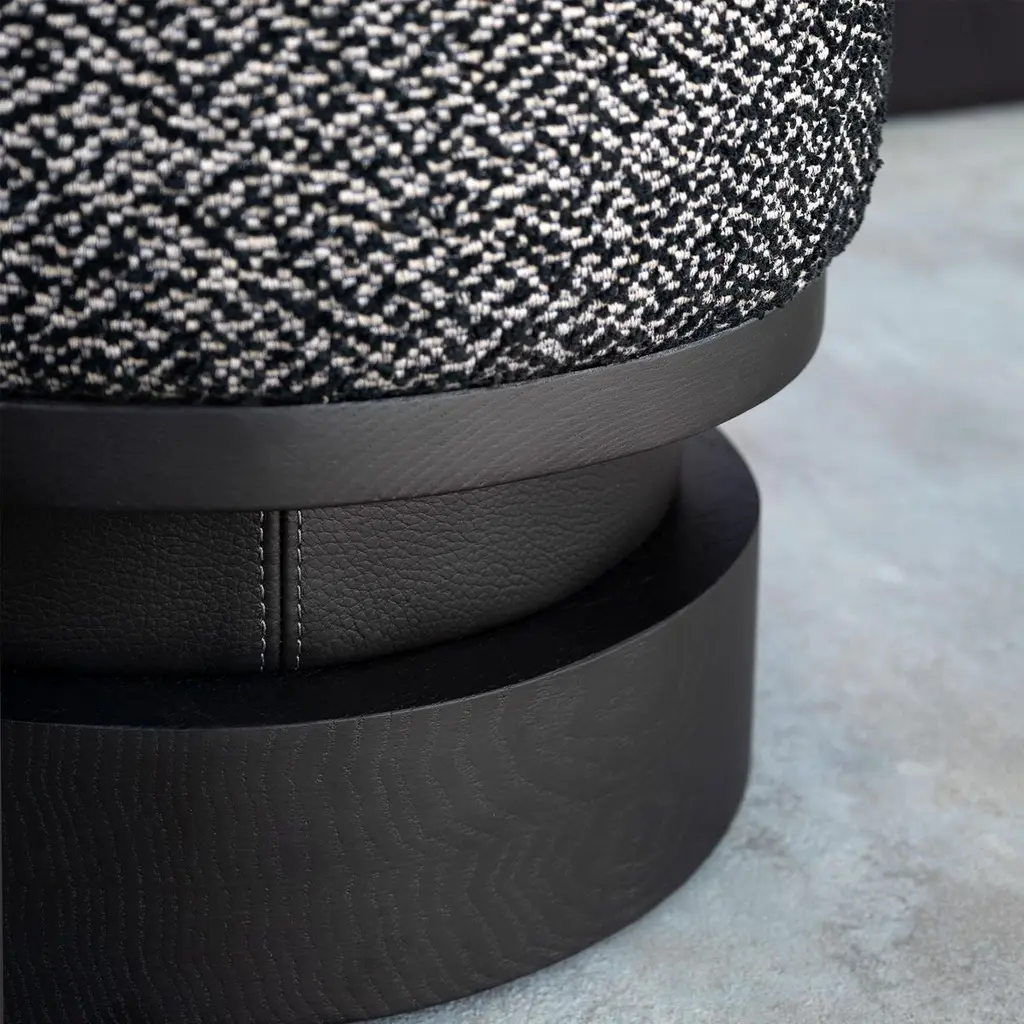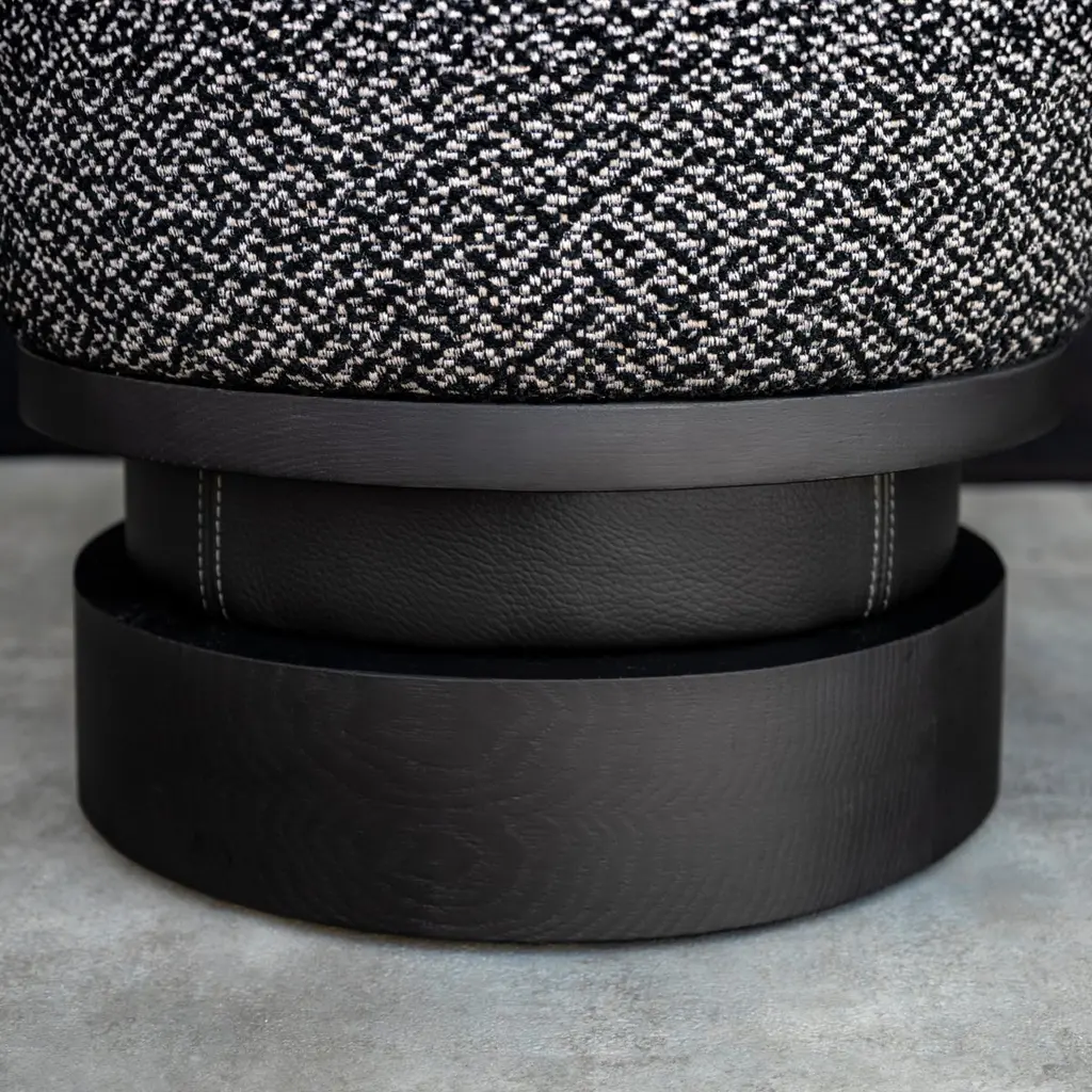 Devils Tower, also called Bear Lodge, was declared America’s first national monument by President Theodore Roosevelt. Being a butte composed of igneous rock, this is a natural monument, sacred for many native American tribes. Porustudio designed Wyo Stool getting inspired by the imposing shape of the monument and in the natural background where it belongs. Reinterpreting it in a modern and sophisticated way, Wyo Stool is an opulent, yet elegant cylindrical stool is upholstered in velvet with its base in black stained ashwood and with a lacquered stripe in the middle with a patina. Wyo Stool will deliver a luxury statement in any contemporary home décor. Wyo Stool is part of the Upholstery Collection.