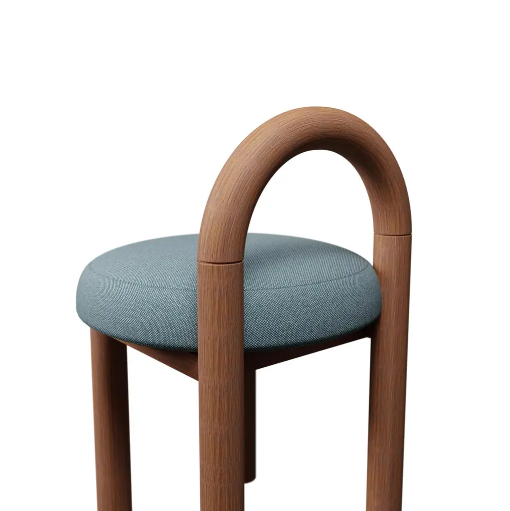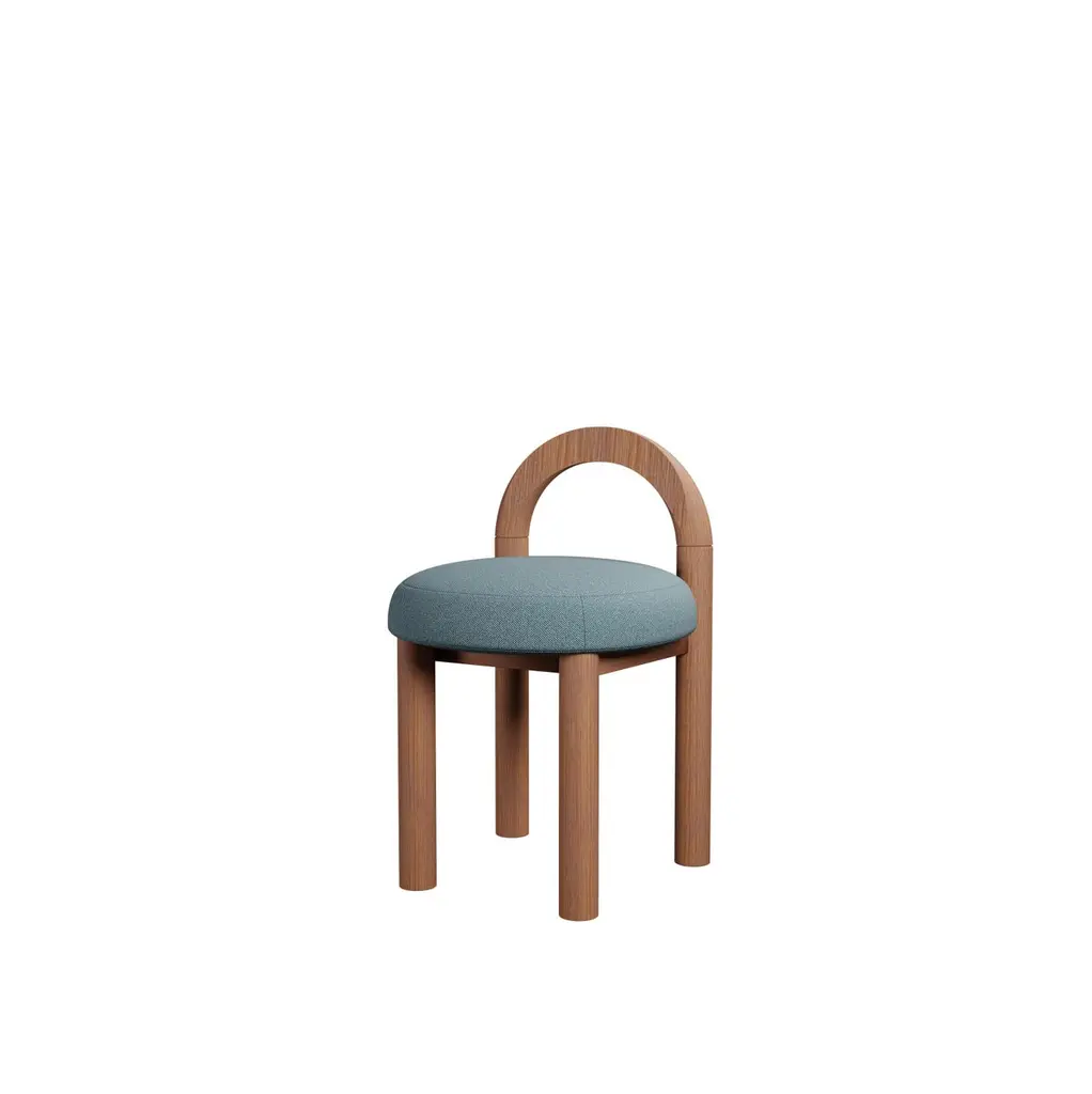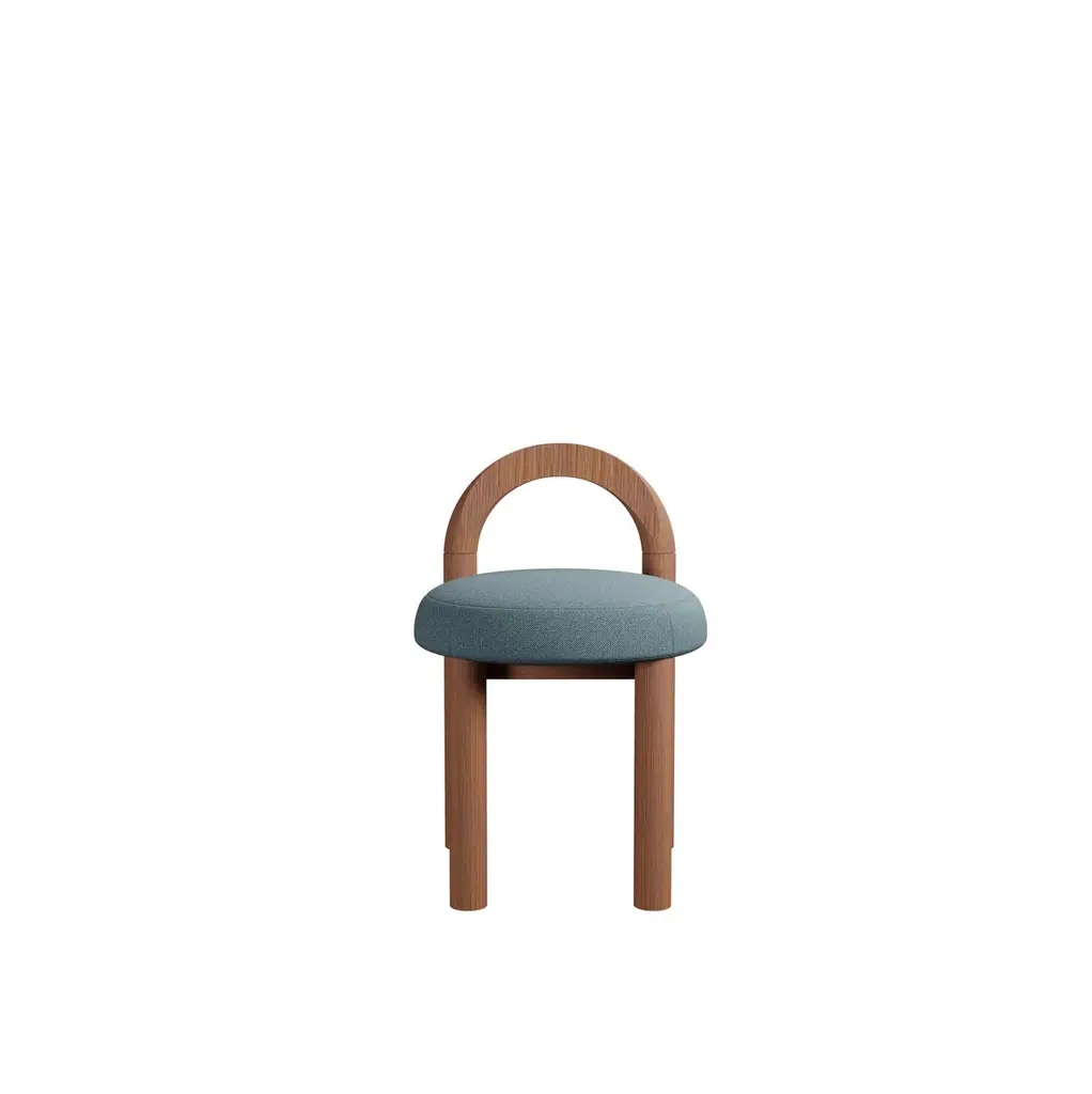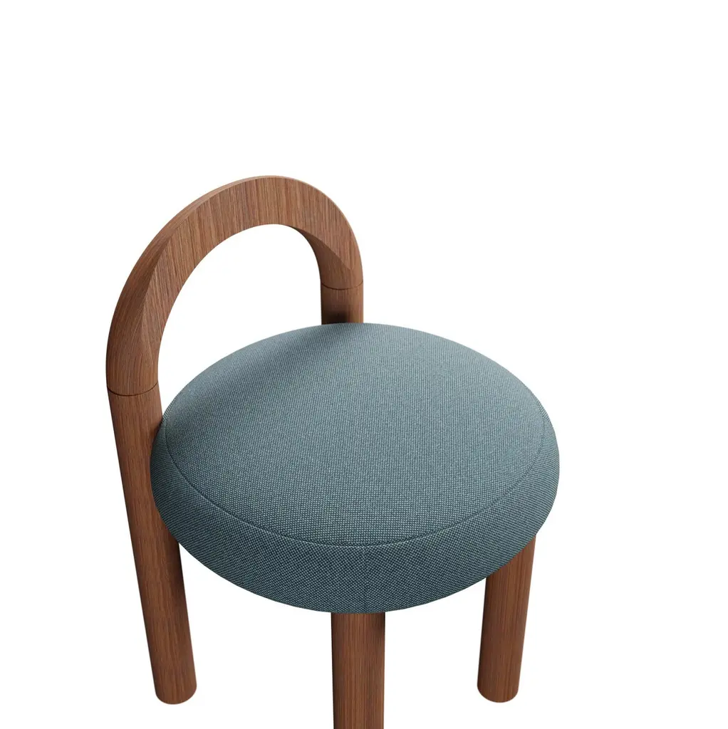 21th Century Moss Stool U In Blue Plain Weave Fabric Handcrafted By Murmurio