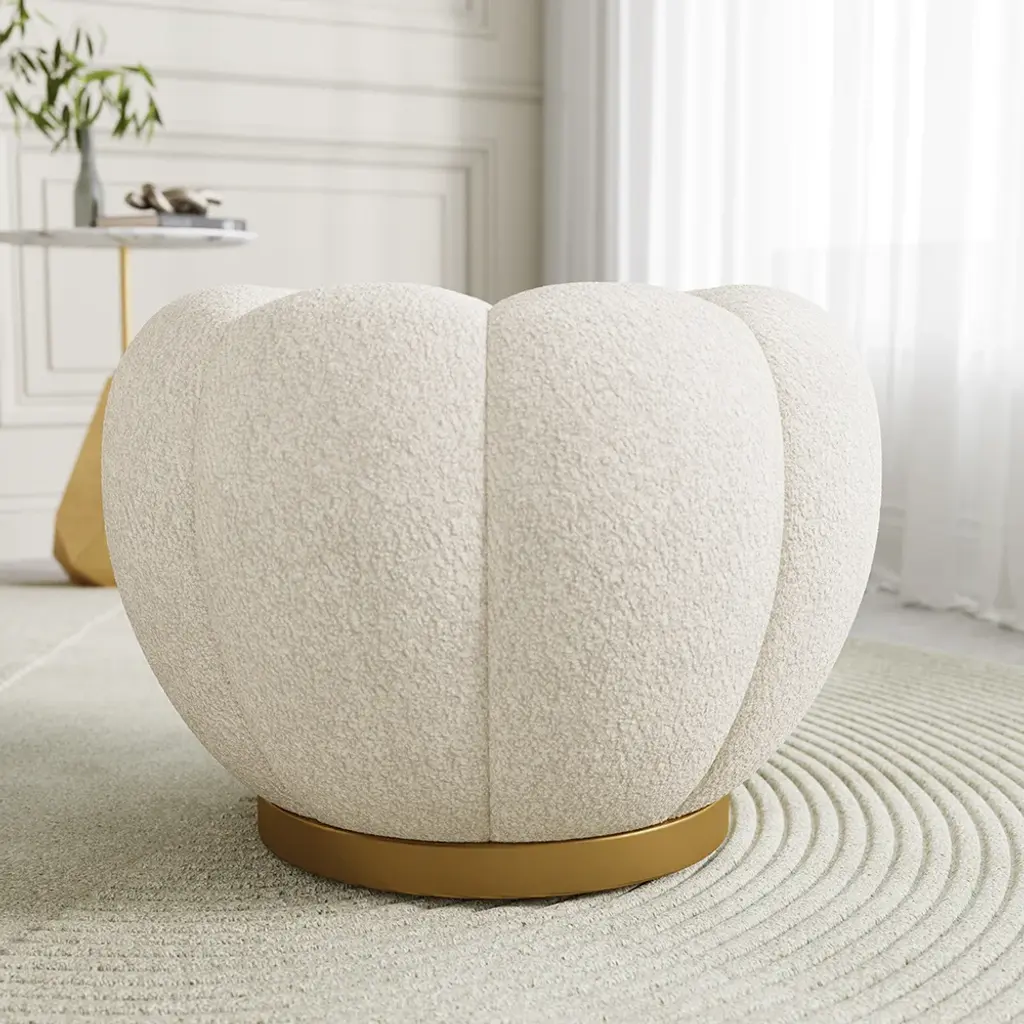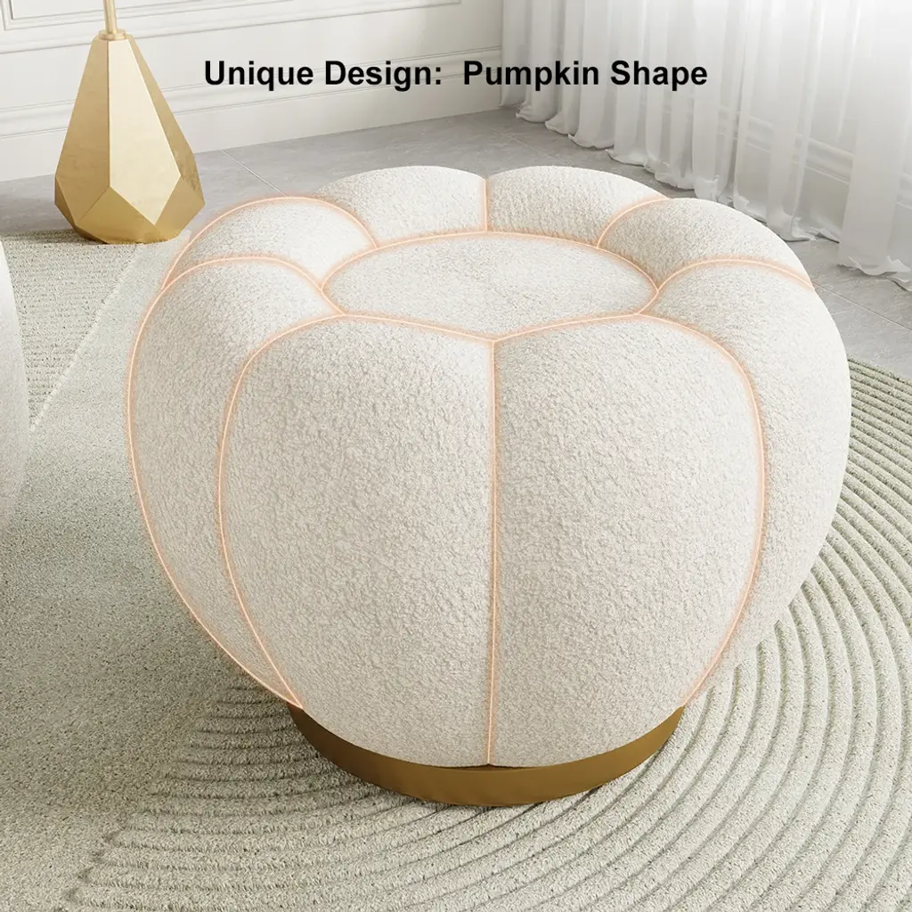 The perfect addition to your living room or family room, this Pumpkin-Inspired Ottoman is the perfect place to sit and read a book, have a snack with your kids, or relax after a long day at work. With its pleated circular design wrapped tight in the soft boucle fabric in the form of a single ottoman, this ottoman would certainly stand out without help.