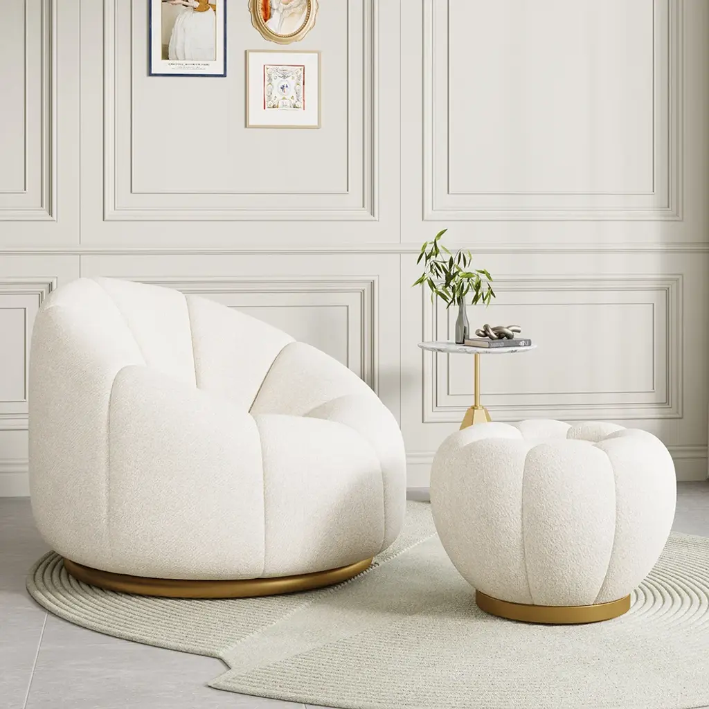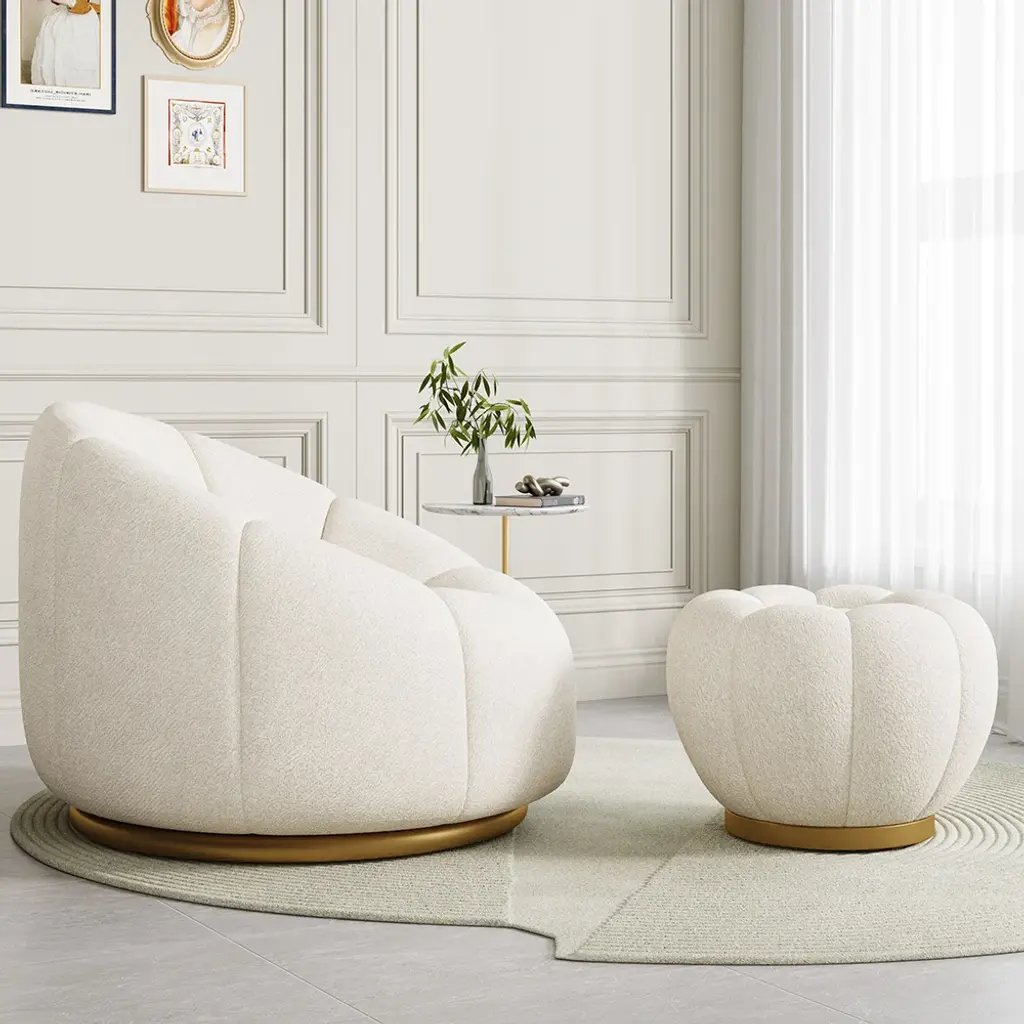 23.6''dia Modern White Cream Boucle Ottoman Pumpkin Pouf Ottoman Cloud Foot Stool