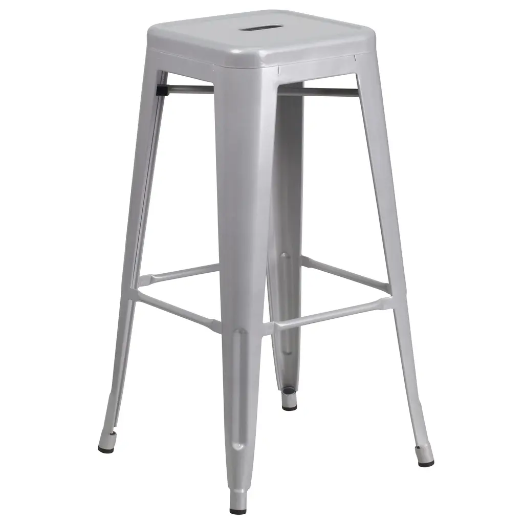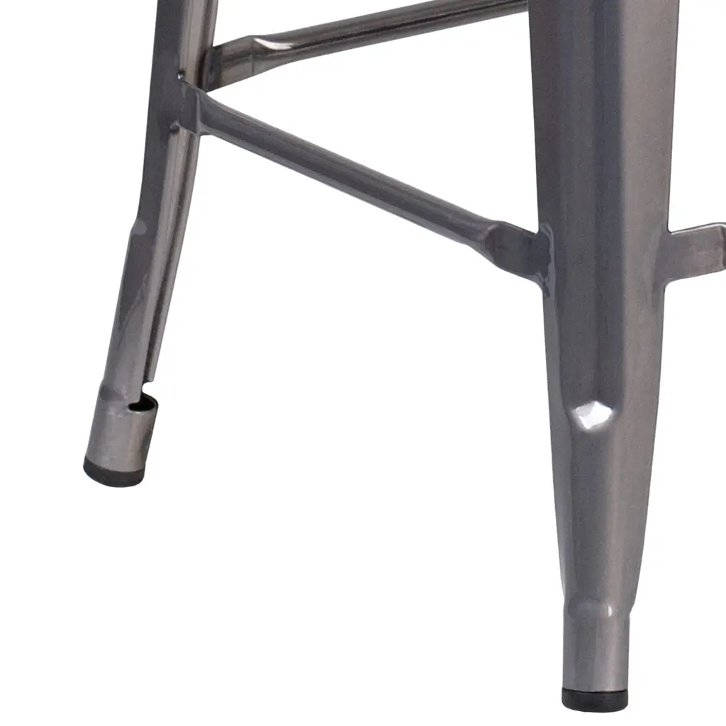 Whether you're a fan of industrial style, a minimalist at heart or love all things modern, this backless counter height stool will add an on-trend look to your home or business. This space-saving stool is stackable for easy floor maintenance and storage. A cross brace underneath the seat adds extra stability and features plastic caps that prevent the finish from scratching when stacked. The convenient built-in footrest helps reduce the pressure on the legs and lower back to promote optimum relaxation for guests. The legs have protective floor glides that prevent damage to flooring. The unique, lightweight design of this backless stool makes it an ideal choice for multiple venues from the neighborhood cafe to your kitchen island.