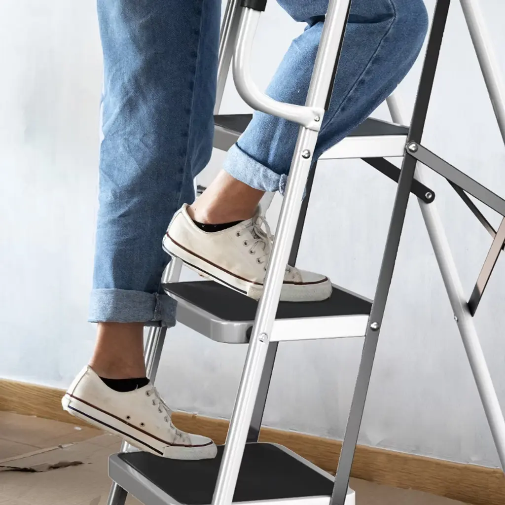 4-step Stool - Folding Ladder With Handrails, Attachable Tool Bag, Nonslip Feet, Steel Frame, And 330lbs Weight Capacity By Stalwart (White)