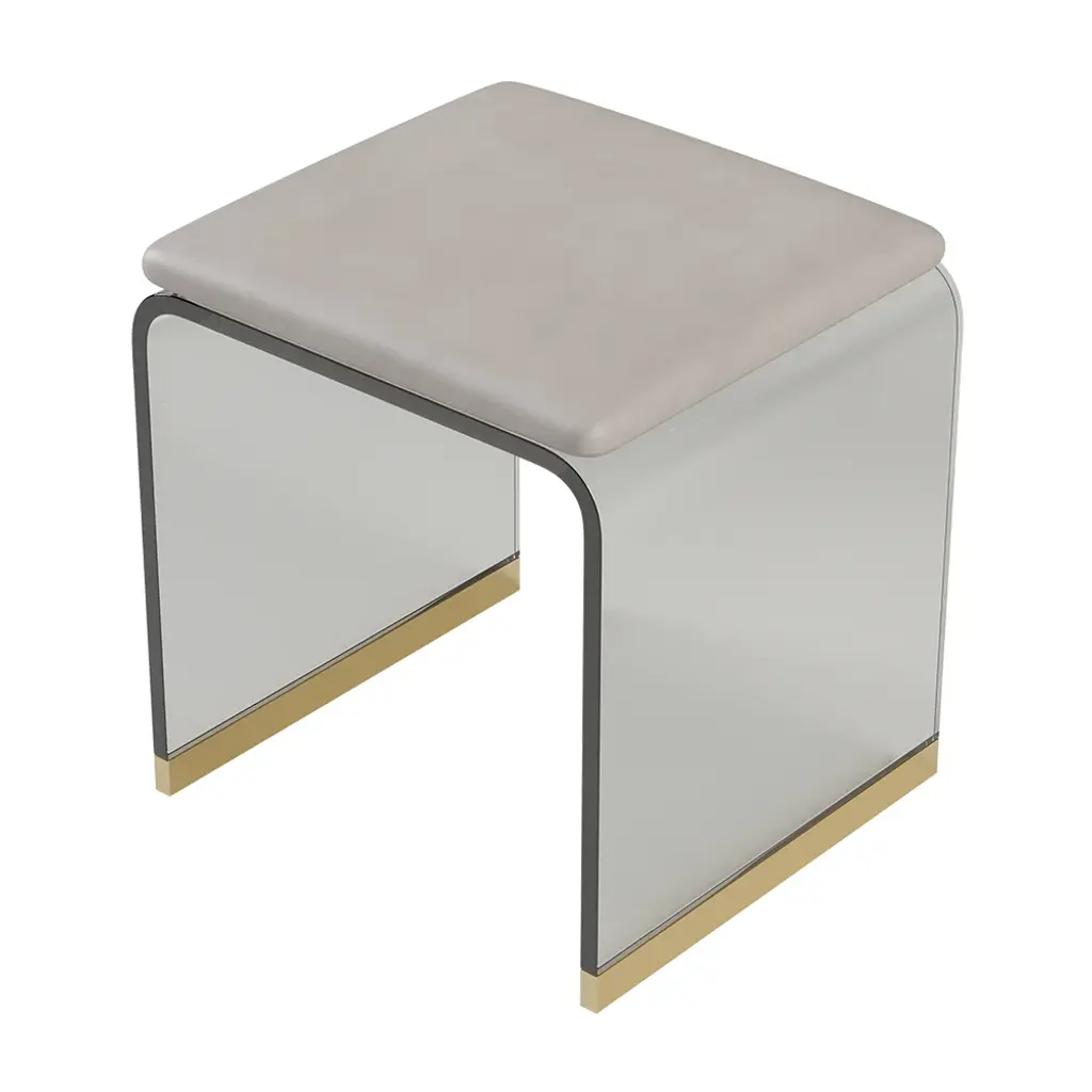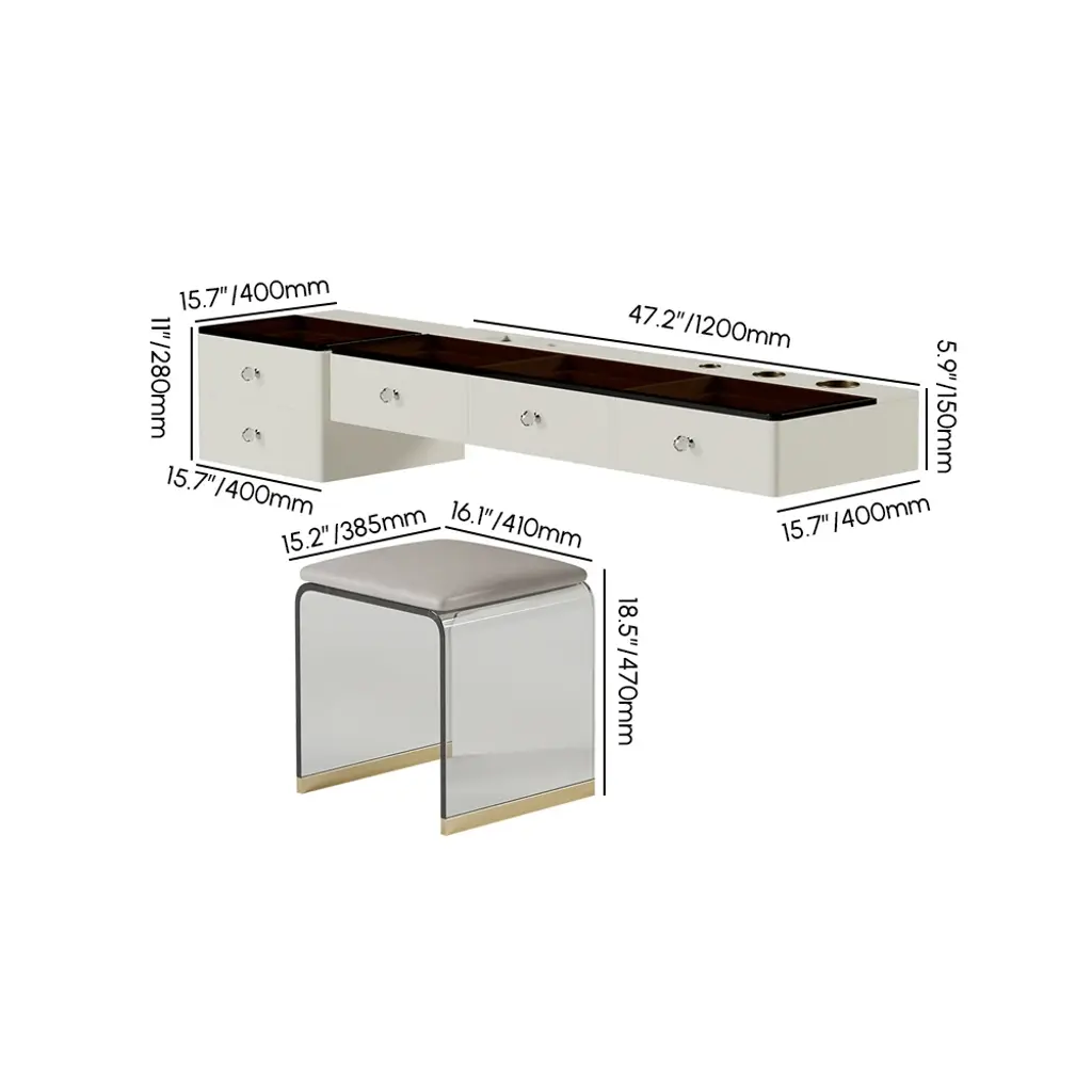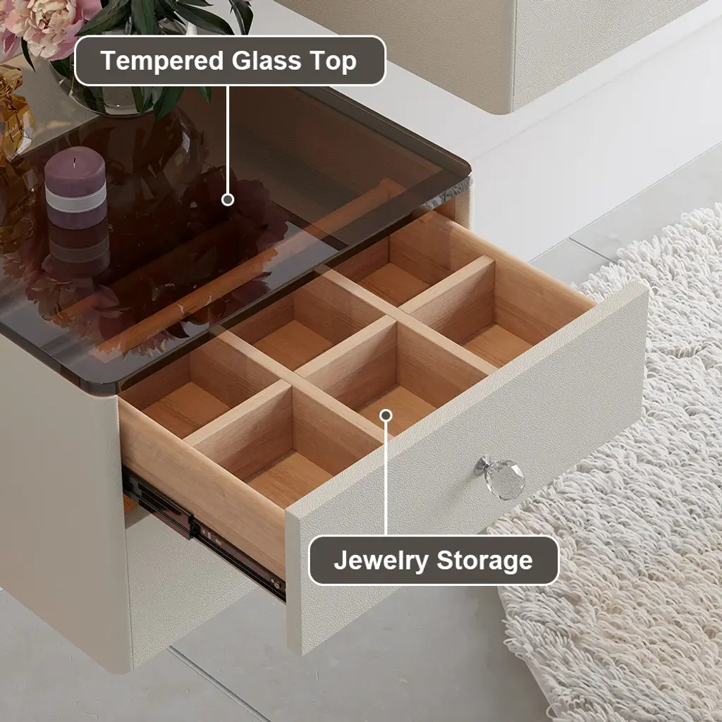 47" Leather Floating Tempered Glass Top Makeup Vanity Set With Stool