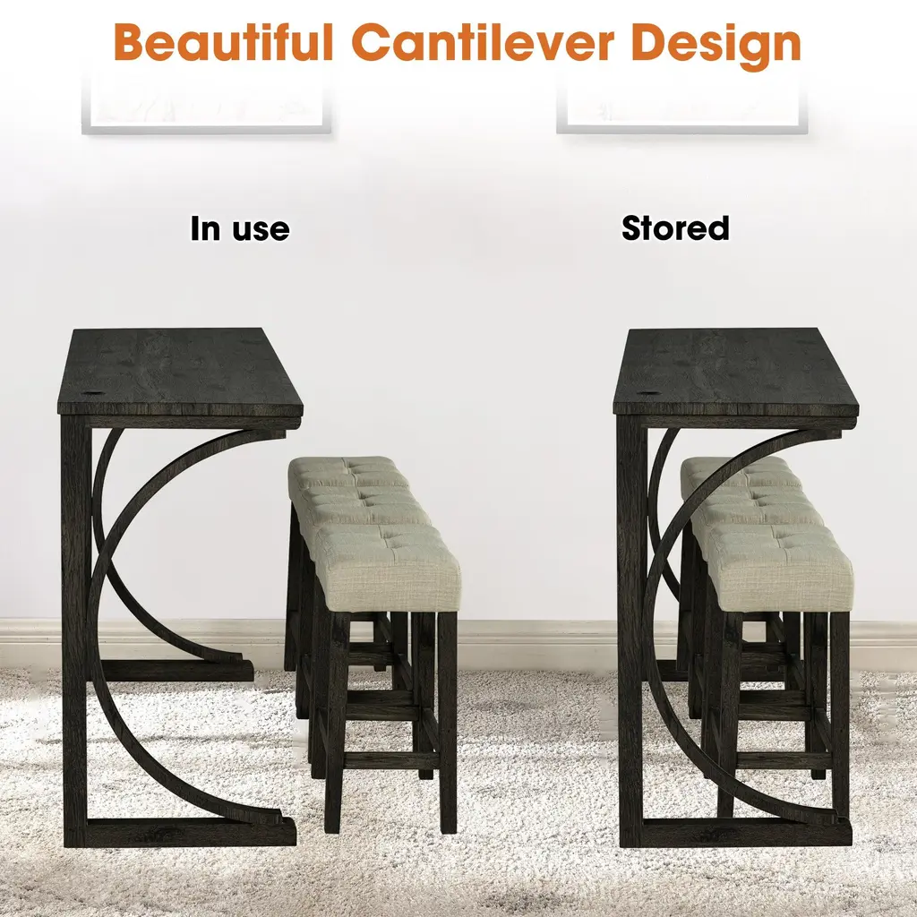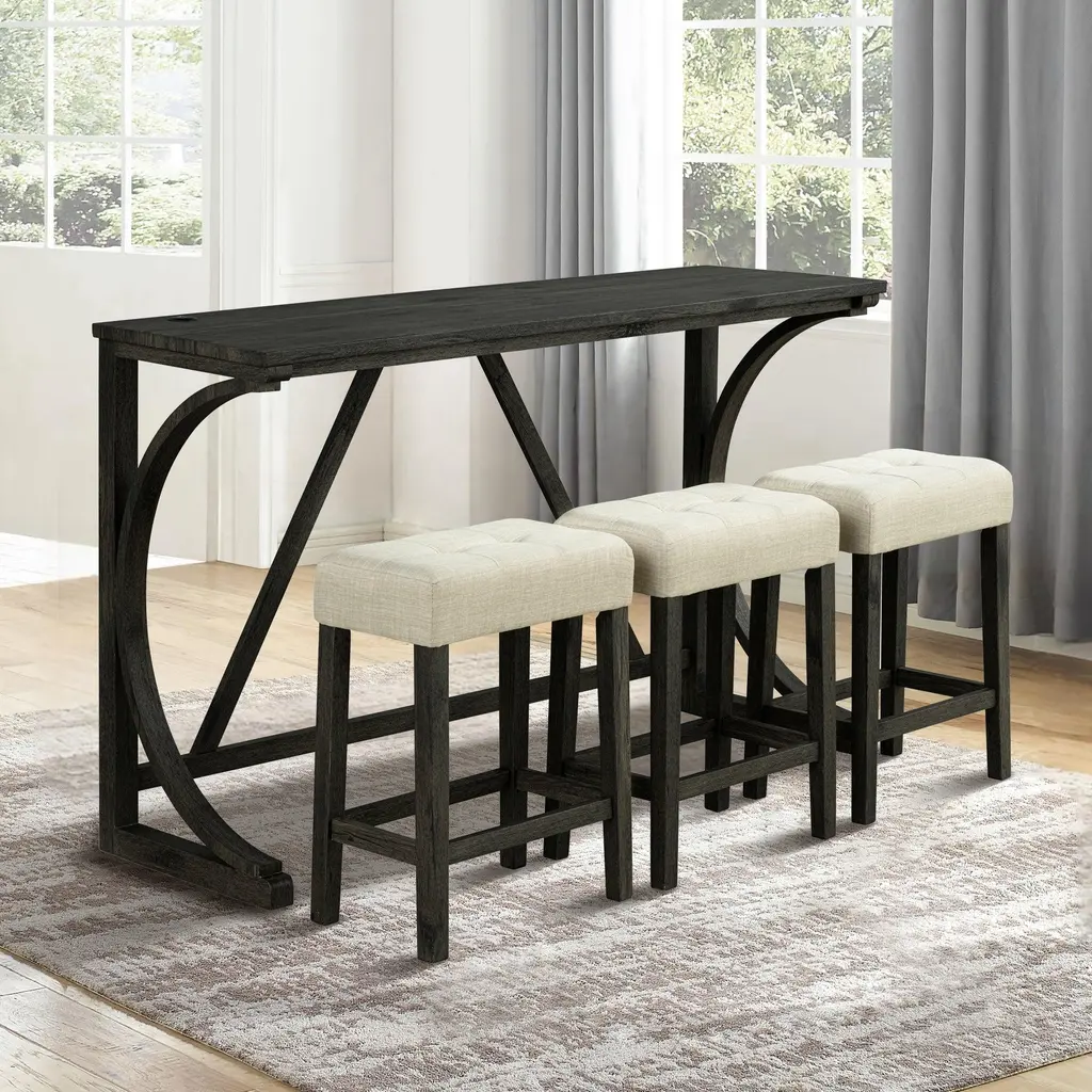 This 59" dining table set comes with three stools, providing ample seating for your home dining needs. The sleek, contemporary design will complement any home decor and add a touch of elegance to your dining room. In addition, the table features a built-in USB port, making it convenient for you to charge your electronic devices while enjoying your meals. This combination of style and functionality makes it an excellent choice for any modern home.