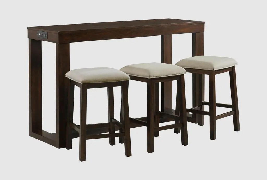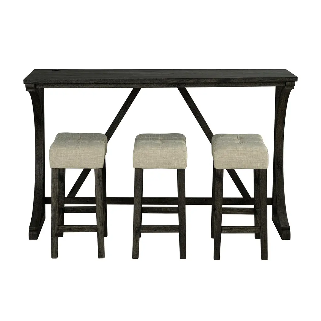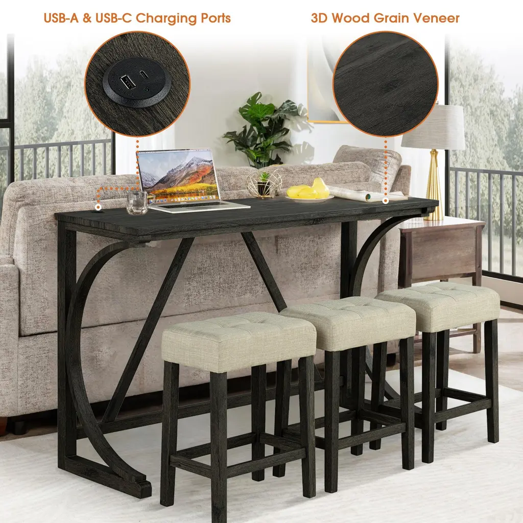 59" Rustic Dining&bar Table Set With 3 Stools For Apartment, Usb-A & Usb-C Charging Ports - Dark Brown